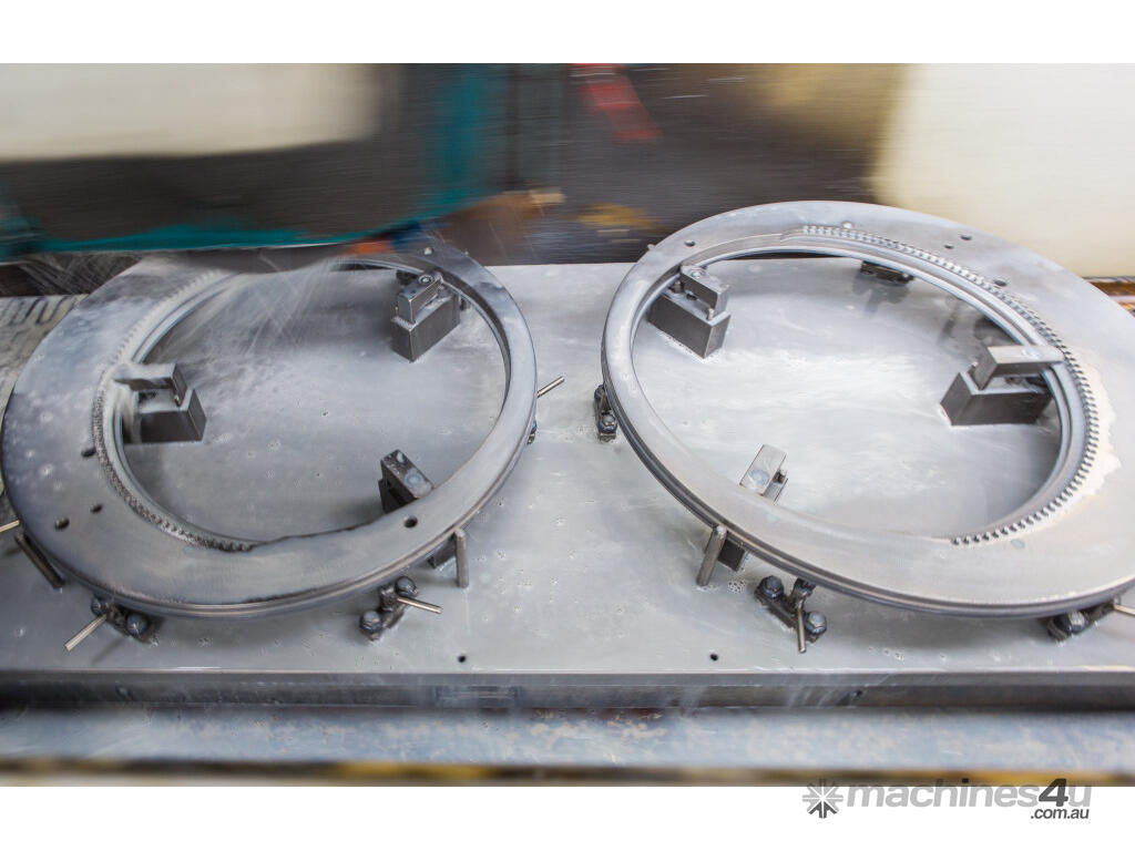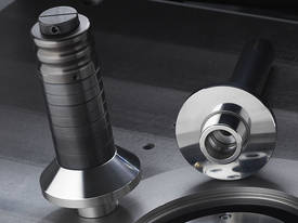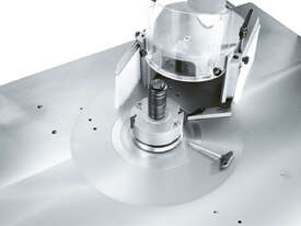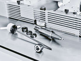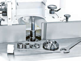 If, during the set-up process, a tool is accidentally moved onto a collision course, the machine, which is equipped with continuous rotational speed control, detects this and warns the operator. This ensures the highest degree of safety, even for inexperienced operators. The machine software prevents collisions between the machine components (not tools) in the border areas of the travel paths of the table rings and the spindle sleeves. This significantly helps the machine to retain its value.