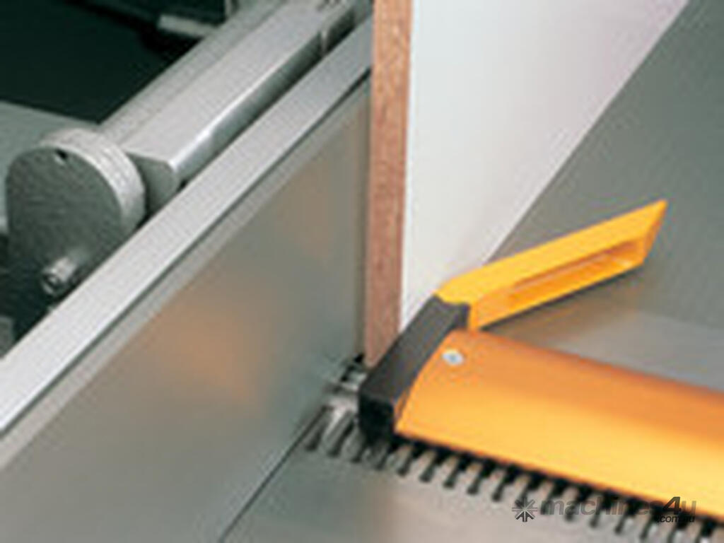 The quick and precise setting for the depth of the cut between 0-8 mm is actuated electrically with a clear, easy to read scale. The centralized control panel features depth of cut setting and the start button for the cutting spindle. The optional T544 fence top mounted control console offers even more comfort to the operator, allowing the controls to ride in and out with the fence, keeping them easily in reach. The digital depth of cut display has a resolution of 0,1 mm.