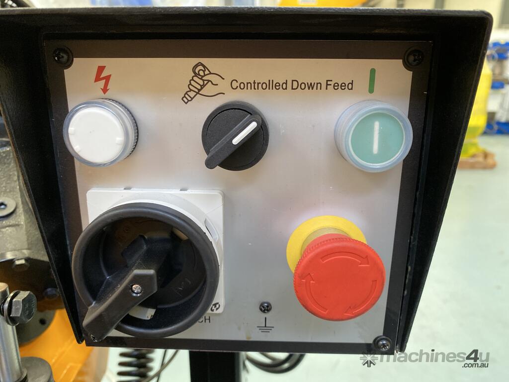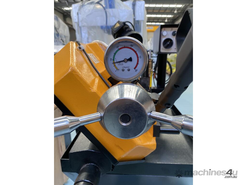 -Pull down lever with stop/start switch, use the hydraulic cylinder in conjunction with the lever for a cold saw type experience