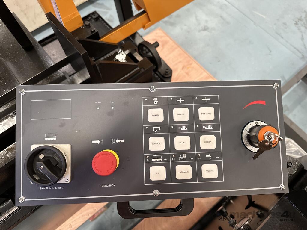 - Semi auto | hydraulic lift up of saw frame and vice movement via push button on the control panel