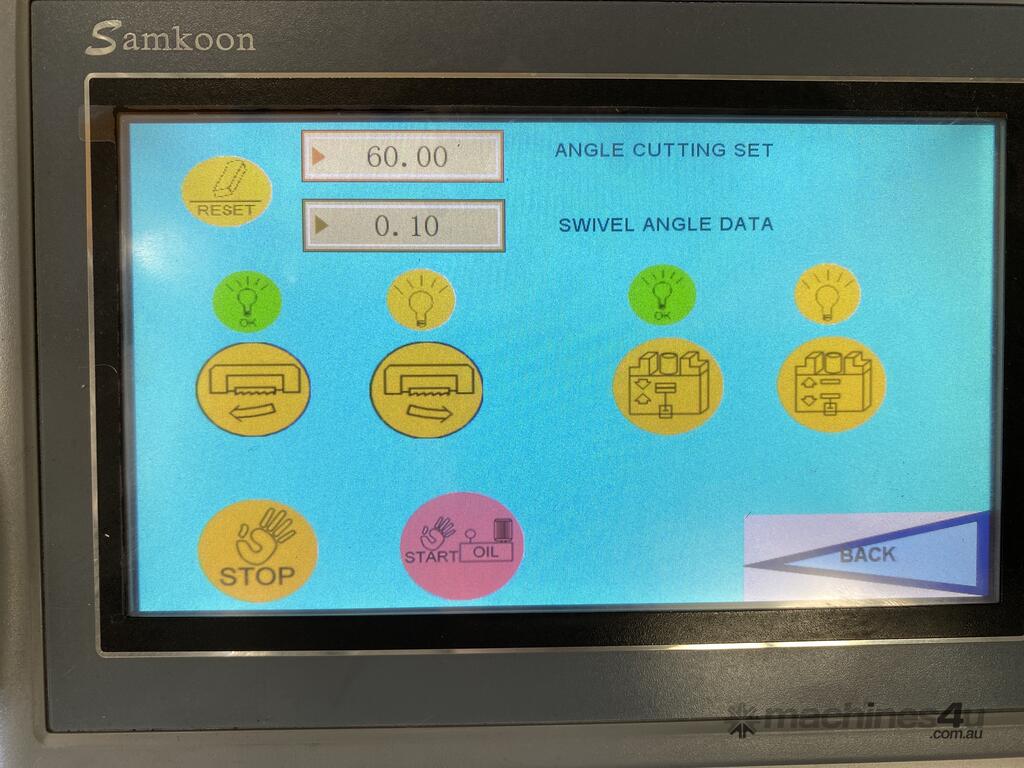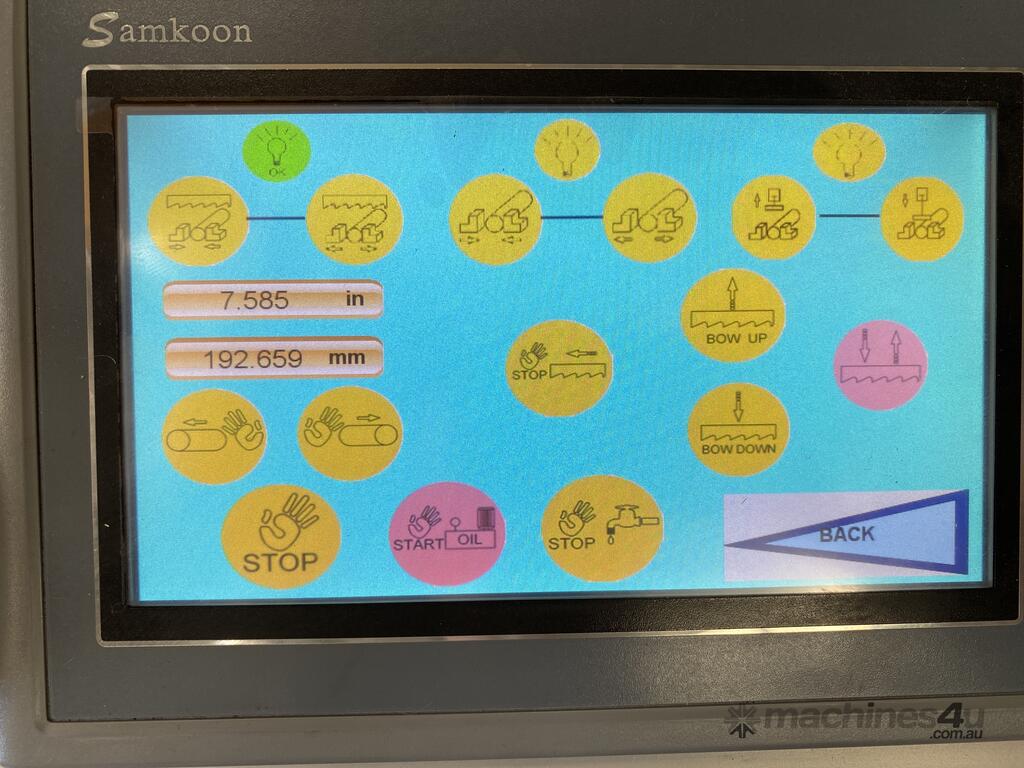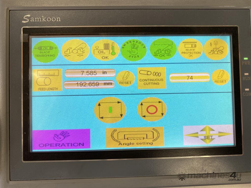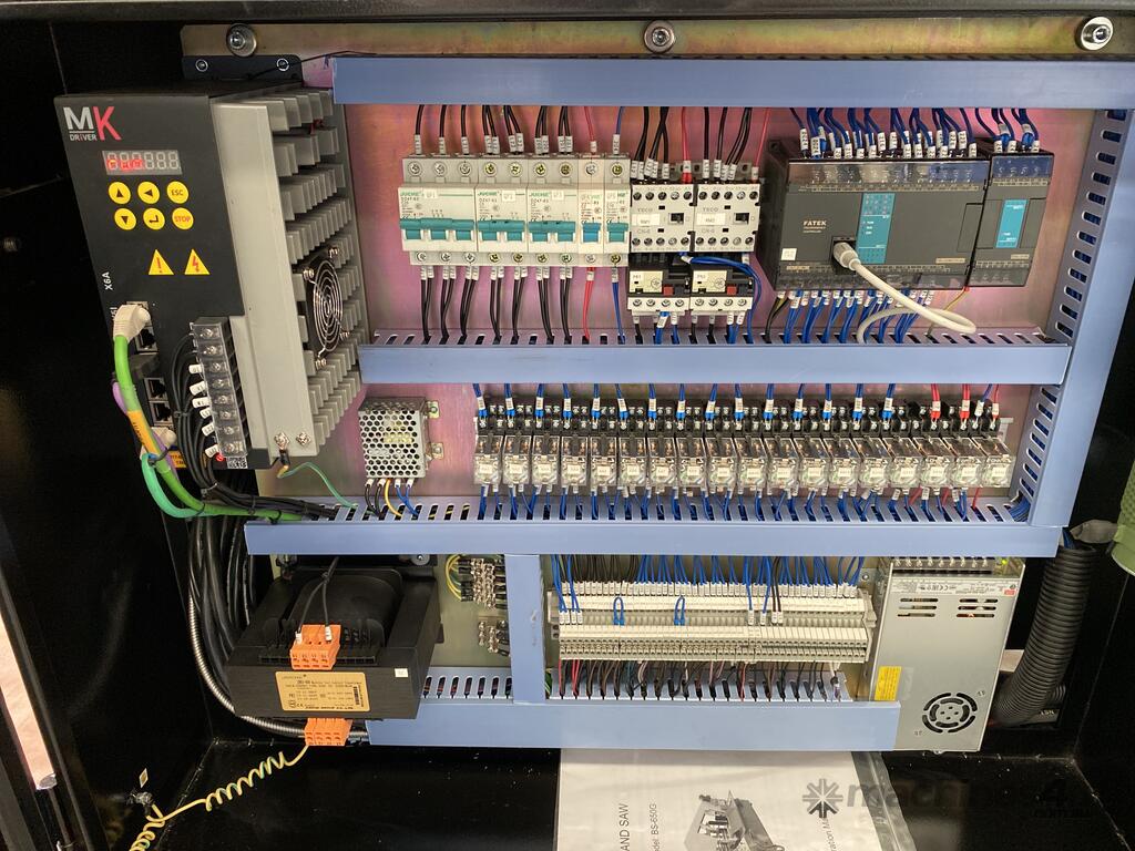 The Mastercut BS-650G is a large capacity mitre band saw at a very attractive price point. This machine comes standard with motorized angle movement controlled via the CNC color touch screen, a servo motor to control the blade speed, rigid construction, hydraulic vertical and horizontal clamping and automatic feeding of the material to the desired length.