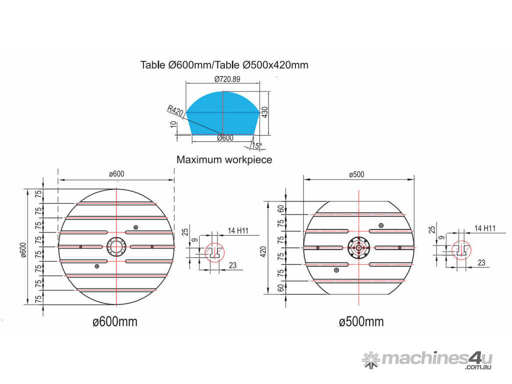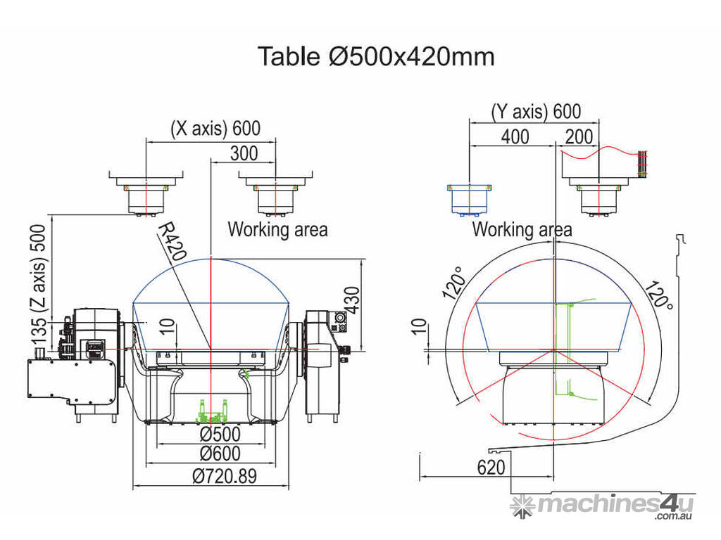 Table working area (mm): Ø600 or Ø500 x 420mm