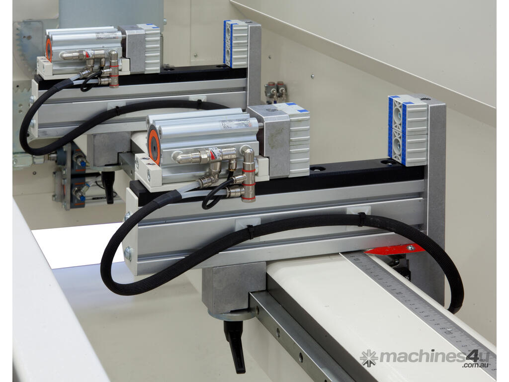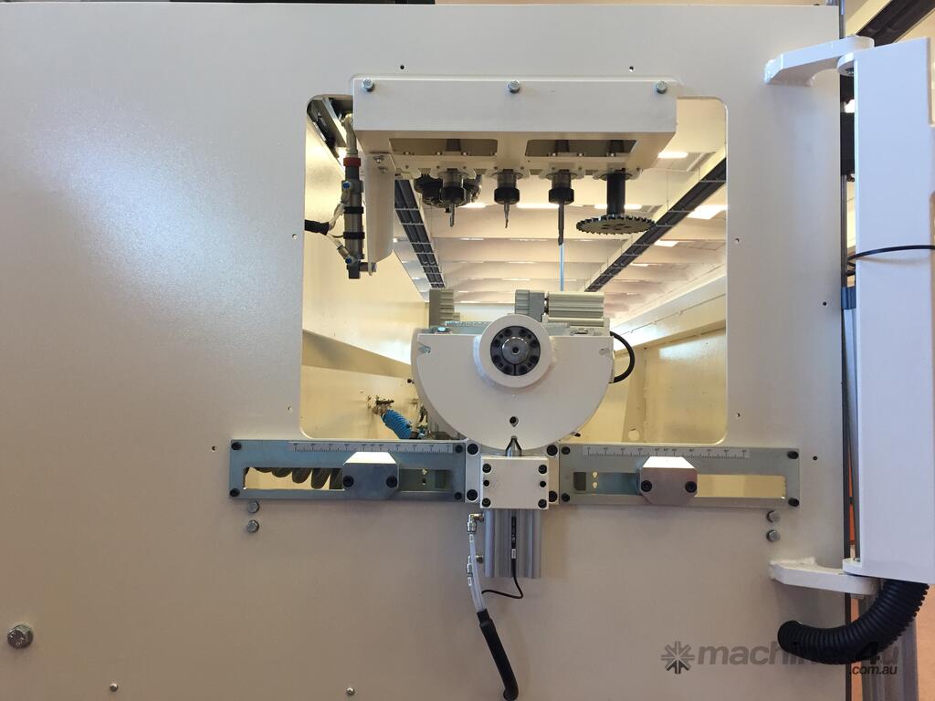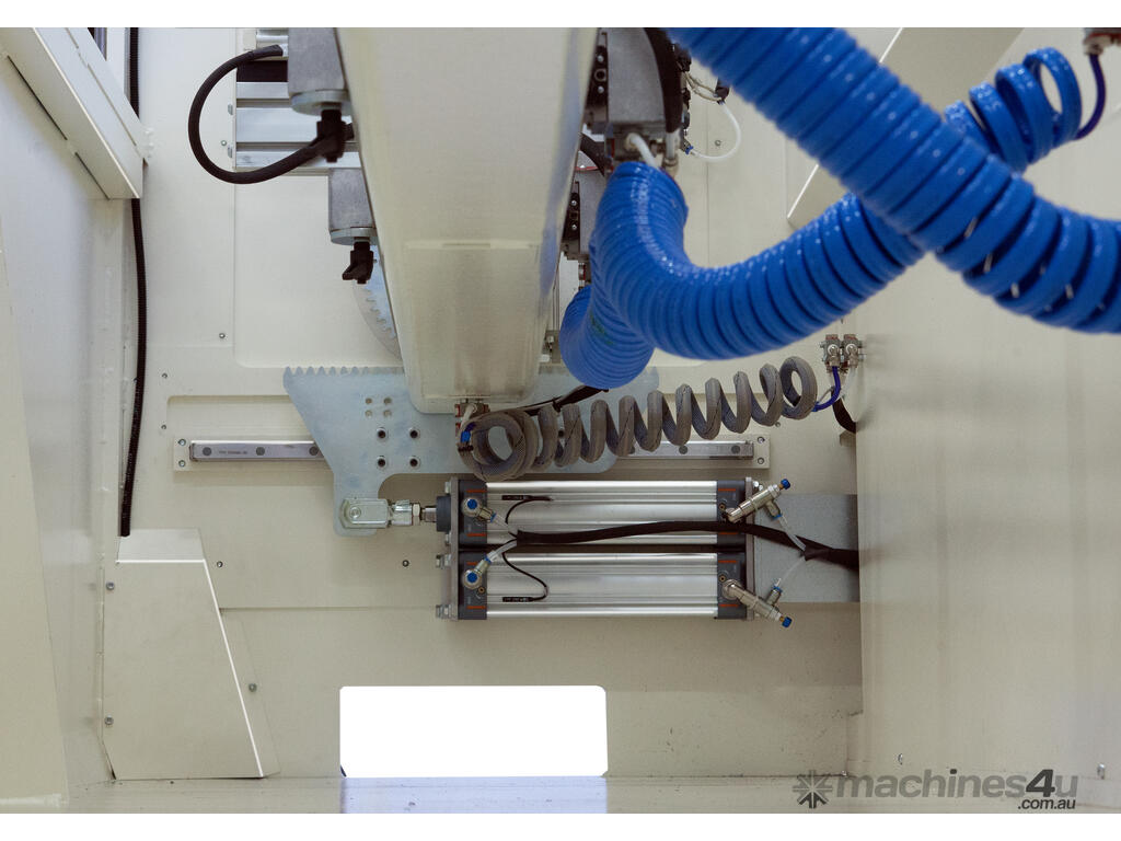 - 3 axis (X, Y, Z) controlled by CNC + 1 axis pneumatically managed.