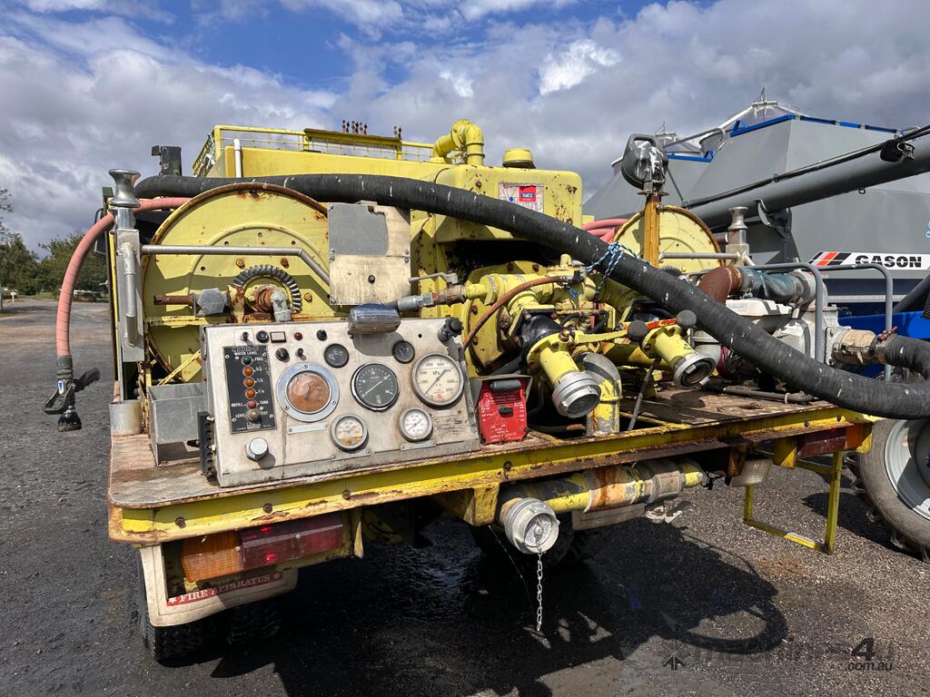 MERCEDES BENZ 1418 FIRE TRUCK. YOM: 1984 CHASSIS NUMBER: 5616. SHOWING: 110169 KM (AS AT 04.03.2026). REGISTRATION: NOT REGISTERED. GVM: 11500. SEATS: 3. STARTS/RUNS: YES. APPROXIMATE MEASUREMENTS: LENGTH 7400MM - HEIGHT 3000MM - AXLE TO AXLE 4200MM. EX ACT GOVERNMENT, 4WD - HIGH/LOW RANGE, 4 SPEED GEARBOX, WATER CAPACITY APPROXIMATELY 3000 LITRES (EQUALISER TANKS), HONDA GX160 MOTOR 4" (QUICK FILL), HATZ DIESEL PACK, 2 X HOSE REELS WITH 4 OUTLETS, WHINCH (CABLE MISSING). USED. INSPECTION RECOMMENDED.