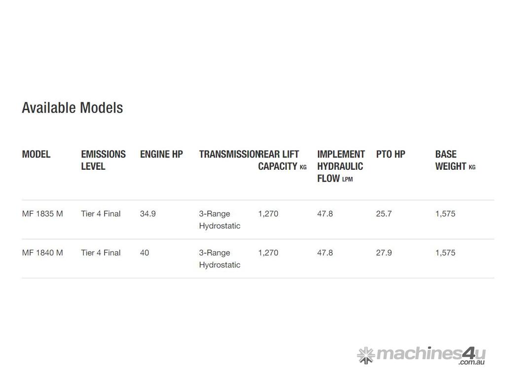 The Massey Ferguson 1800 M Series tractors, with a horsepower range of 35 to 40 hp, have been designed with power users in mind, like contractors, growers and commercial operators. They come with features that enhance convenience and ease of operation to save you time and give you the versatility you need to handle any task your day serves up.