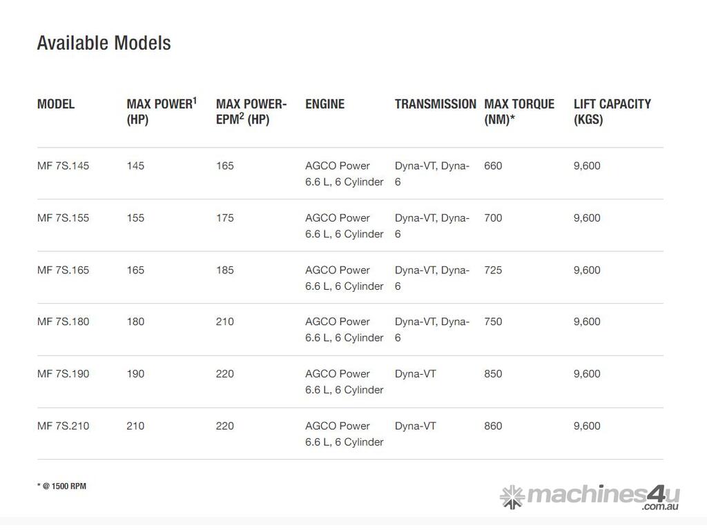Ready to Work! The new straightforward and dependable Massey Ferguson® 7S Series provides ultimate efficiency and reduced operating costs. The MF 7S Series incorporates the technology you want, setting new standards in ease of operation and reliability.