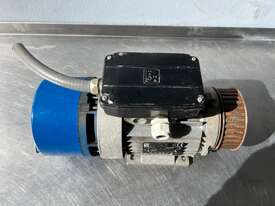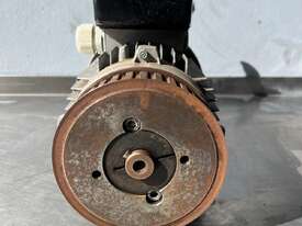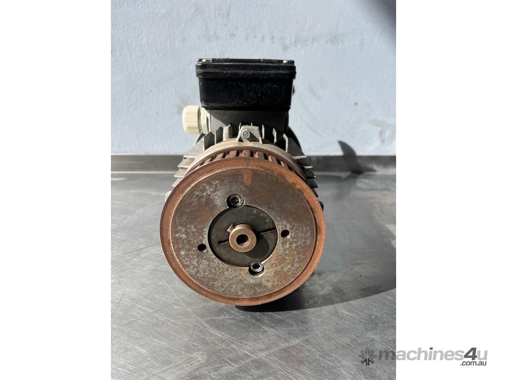 Condition: Used but in good condition. The motor housing and fan cowl are intact with only minor cosmetic marks. The pulley has some surface rust but the motor shaft and body are solid. Brake release lever is present and functional.