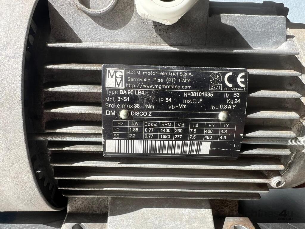 For sale is a heavy-duty MGM "BA Series" 3-phase electric brake motor. Made in Italy, these are premium industrial motors designed for applications requiring rapid stopping and holding power (hoists, conveyors, automated machinery).