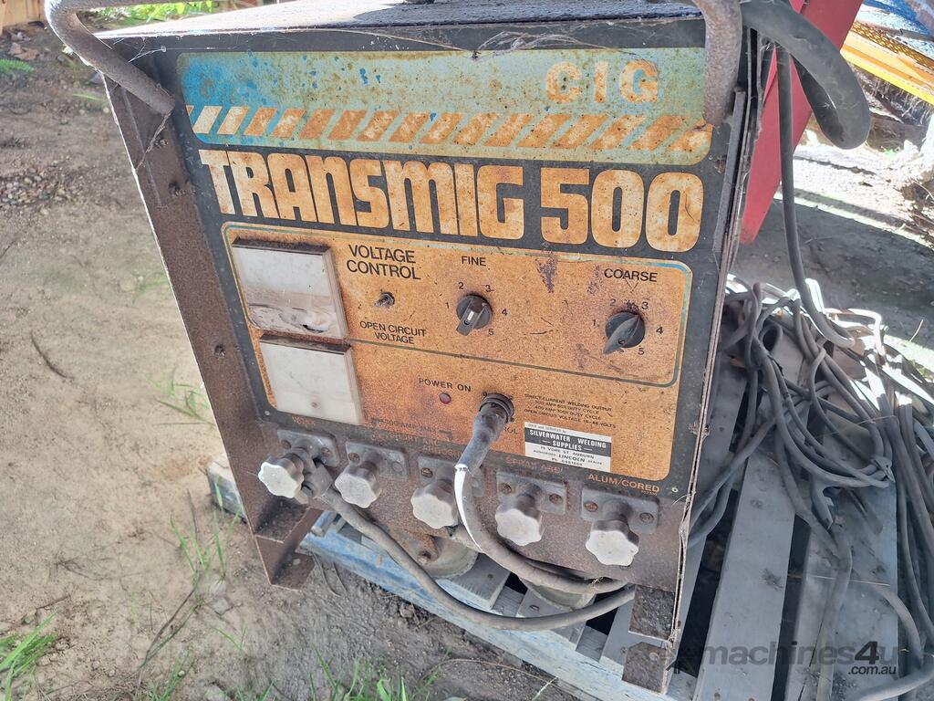 MIG Welder, CIG, Transmig 500, with Remote Wire Feed,Includes CIG Transmatic 3.2 Remote Wire Feed & Welding Lead, 3 Phase, 415V, 50Hz, 38A per Phase Max. Current at O.C.V. Note: Poor Condition, Corrosion on Cabinet, Fan Guard Corroded,Serial No: 8104009