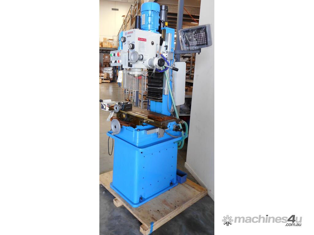 FEATURES:* This geared head heavy duty milling & drilling machine with dovetail way cast column * Equiped with power feed on the longitudinal travel * Power rise and fall on the head * Comes complete on stand with coolant system * All the fuctions of a normal milling machine but at a fraction of the price * Head can tilt both left and right to 90deg * Packing size does not include stand *