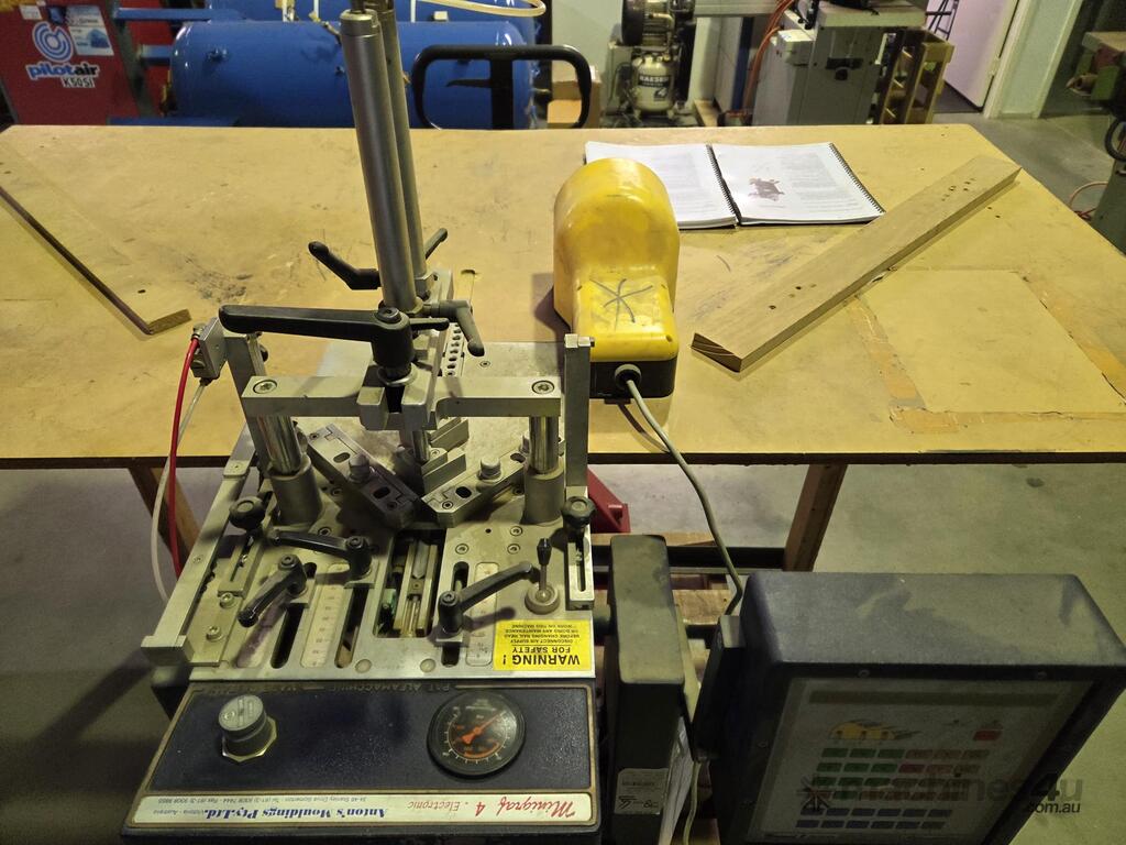 1). MINIGRAF 4 FRAME V-NAILER UNDERPINNER Alfamacchine by Forli 240v MADE IN ITALY Year 2005, AUTOMATIC, ELECTRONIC, PNEUMATIC FOOT OPERATION, FOR PICTURE FRAMING, VERY GOOD CONDITION, FRACTION OF NEW PRICE!