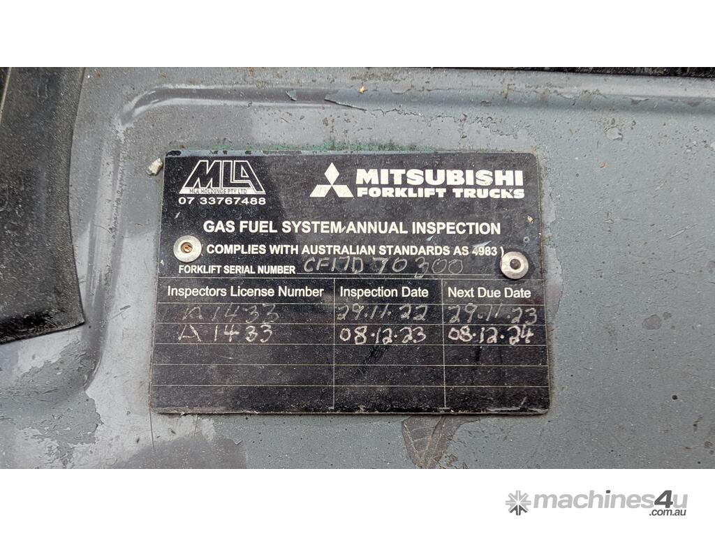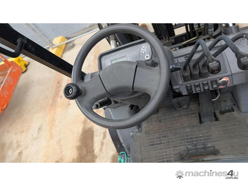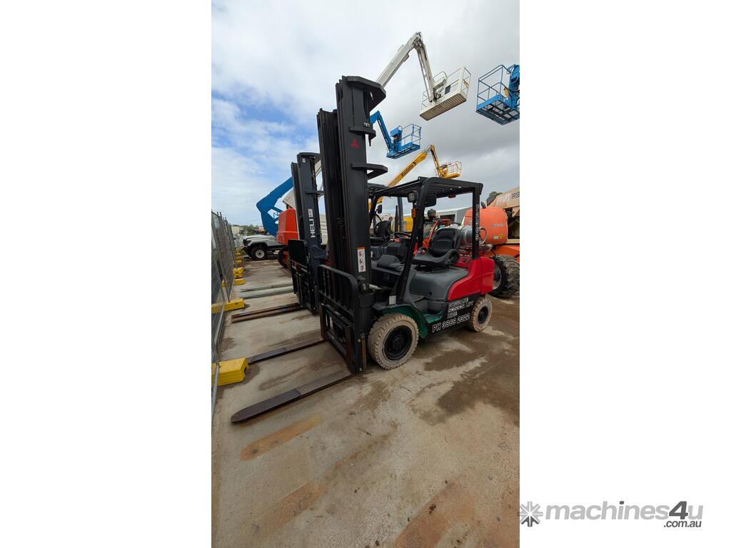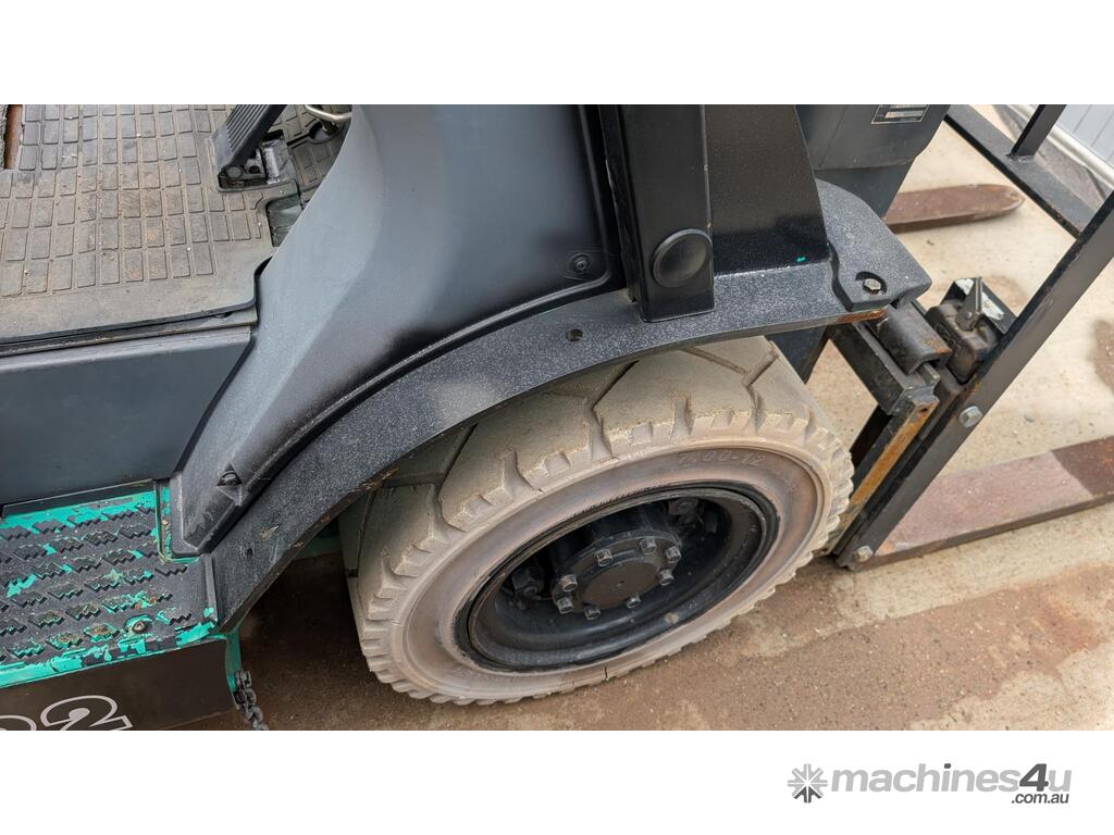 This Mitsubishi forklift is a quality machine in excellent condition. It has non-marking tires, a 2.5-ton lifting capacity and a 6 meter reach.