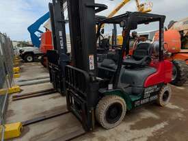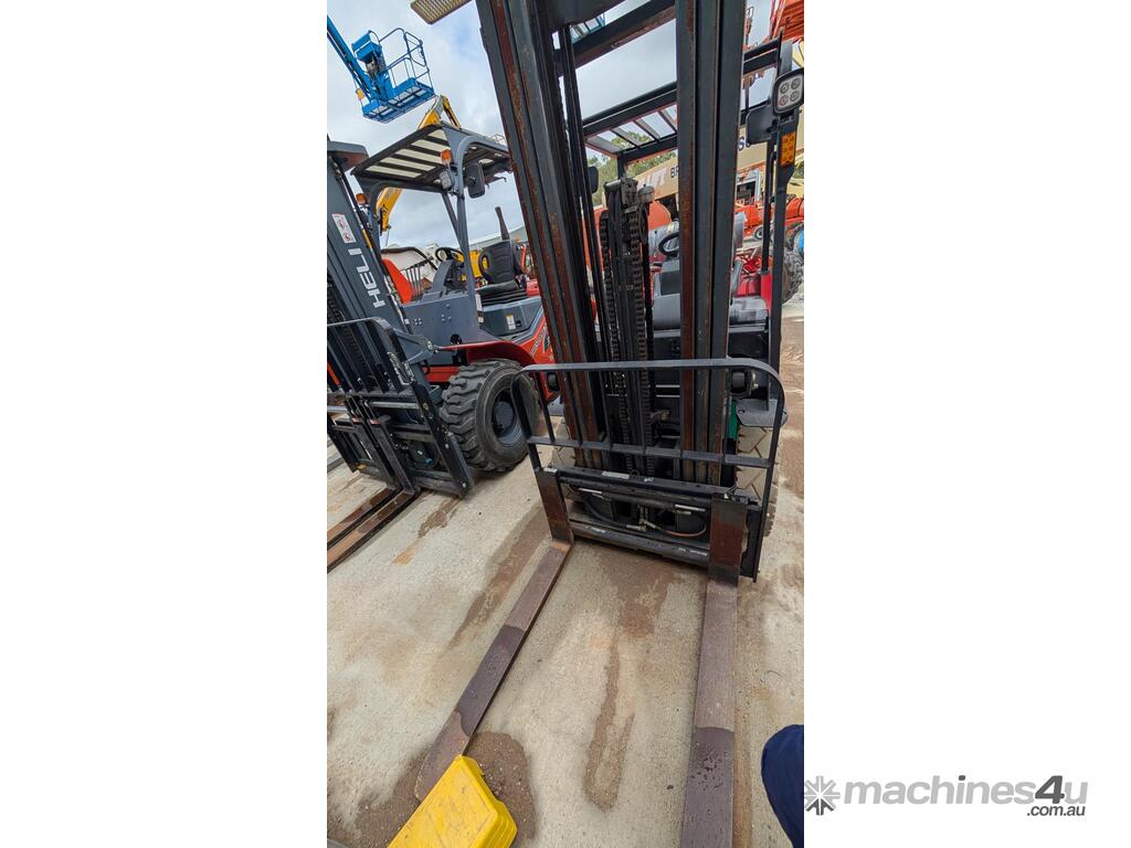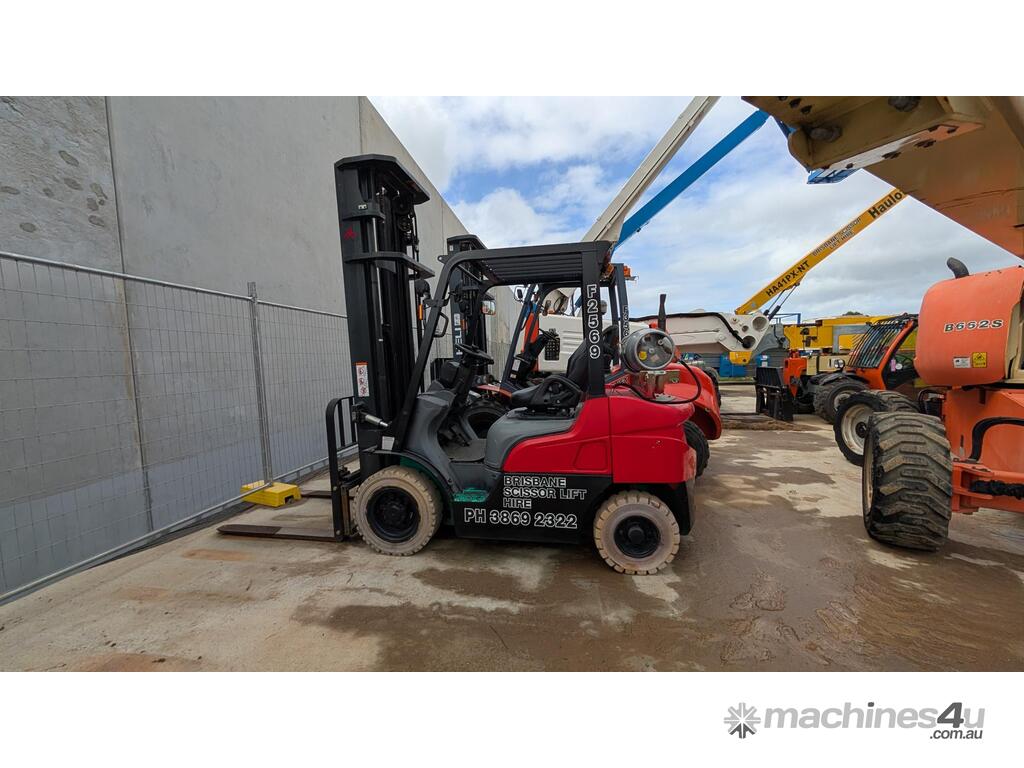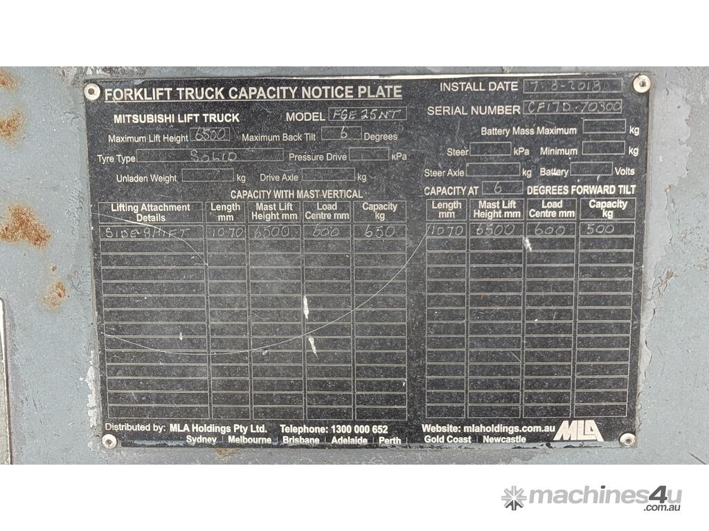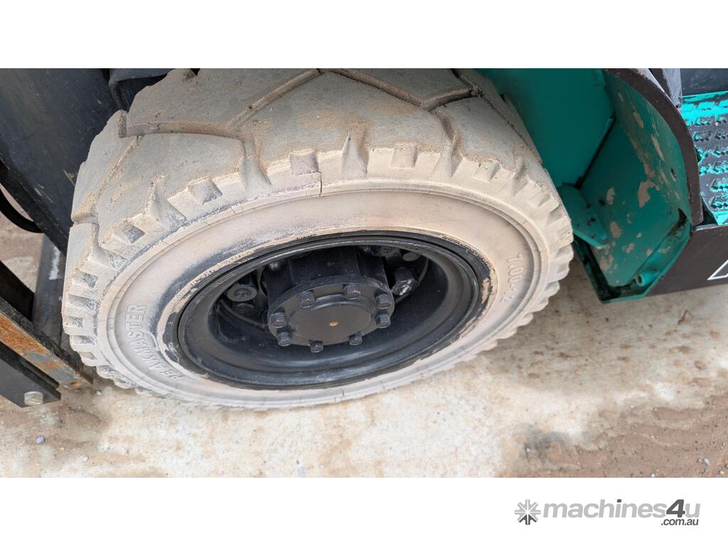 This Mitsubishi forklift is a quality machine in excellent condition. It has non-marking tires, a 2.5-ton lifting capacity and a 6 meter reach.