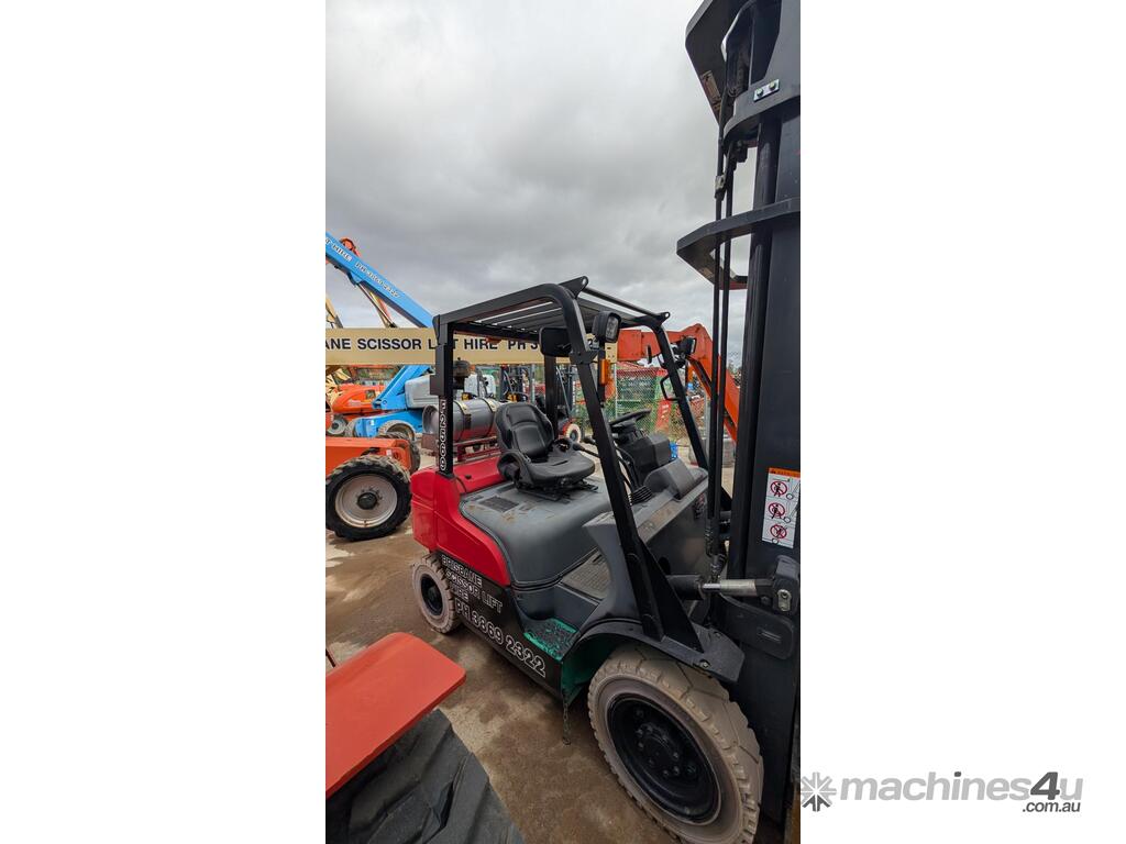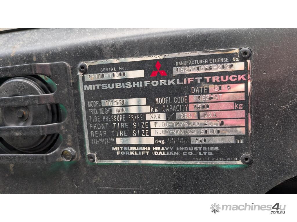 This Mitsubishi forklift is a quality machine in excellent condition. It has non-marking tires, a 2.5-ton lifting capacity and a 6 meter reach.