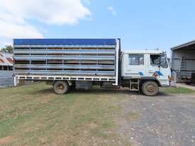 1989 Mitsubishi FK415 6 seater truck. Approx. 200,000 kms on new engine and rear diff that were replaced in 2013. New tray approx 6 years ago. Tray has a rubber lining on it for non slip and easier on livestock. 18 foot tray. 18ft crate with sheep decks. In good working order, solid frame with odd plywood panels in need of replacing. Crate comes with removable canvas top. 2 x pens apx 9ft each. Rear sliding door, with drop down ramp in back door. Stands for crate available as well. Registered until September 2026.