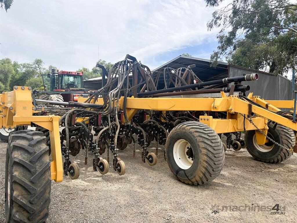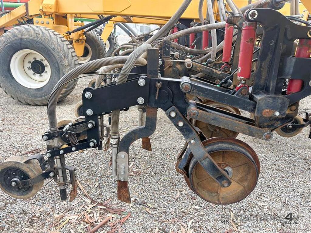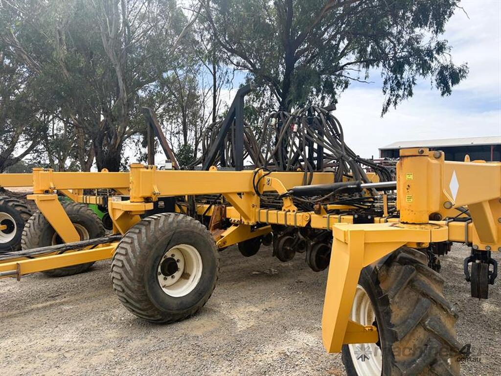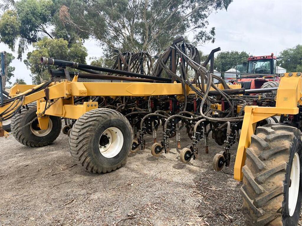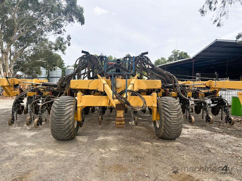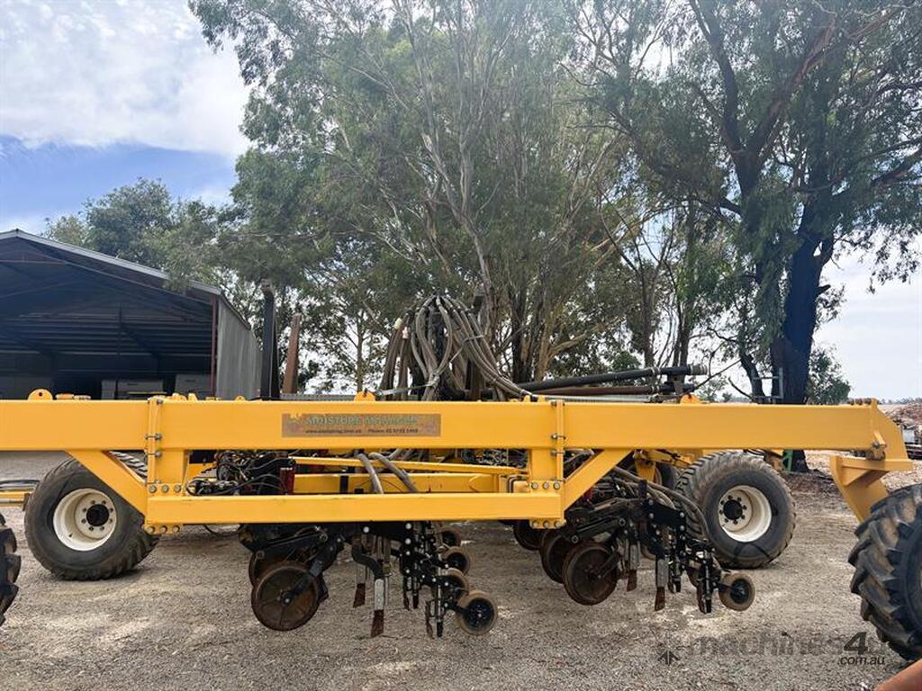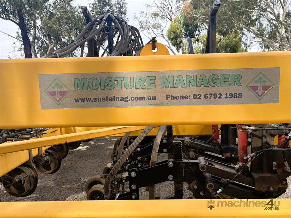 MOISTURE MANAGER AIRSEEDER BAR, Manufactured by SustainAg, 9m wide, 26 units on 346mm spacings, can be put onto 15" spacings with ability to seed at 30" by turning off taps, parrallelogram units with hydraulic breakout and disc coulters, knife points with Groundhog closing tools and press wheels, original hydraulic presswheels included, plumbed for tow behind cart, very solid machine in great working order, liquid system and blockage monitors not included, located Yarrawonga, available via MRE Auctions, con
