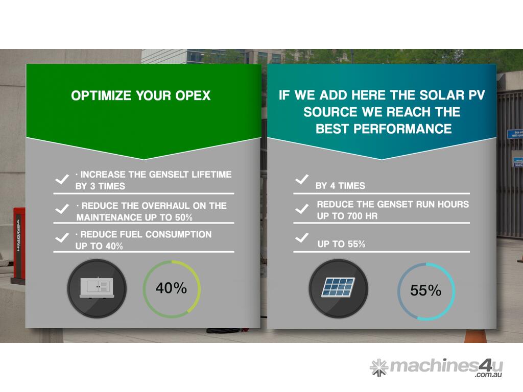 The EHR can operate as a main power source, reducing emissions and noise to zero, or it can be combined with a diesel or gas generator set to enable intelligent load management. Fuel consumption and CO2 emissions are reduced drastically in these combined working scenarios.
