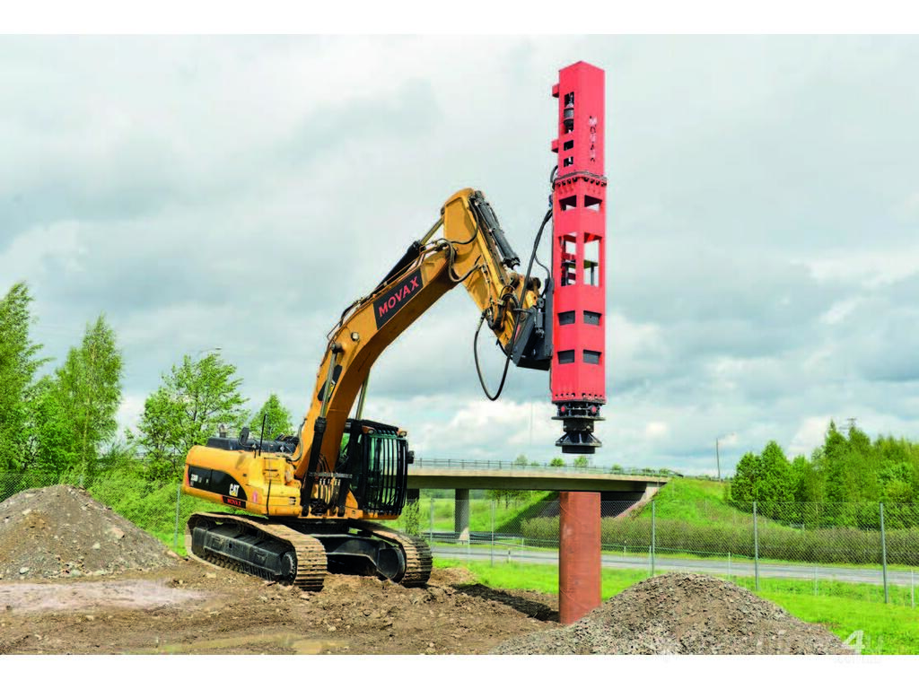 MOVAX piling hammers are the optimum solution for a wide range of piling requirements and a variety of site conditions including difficult soil conditions. The same unit can flexibly be utilised either ecavator- or excavator-leader mast-mounted.