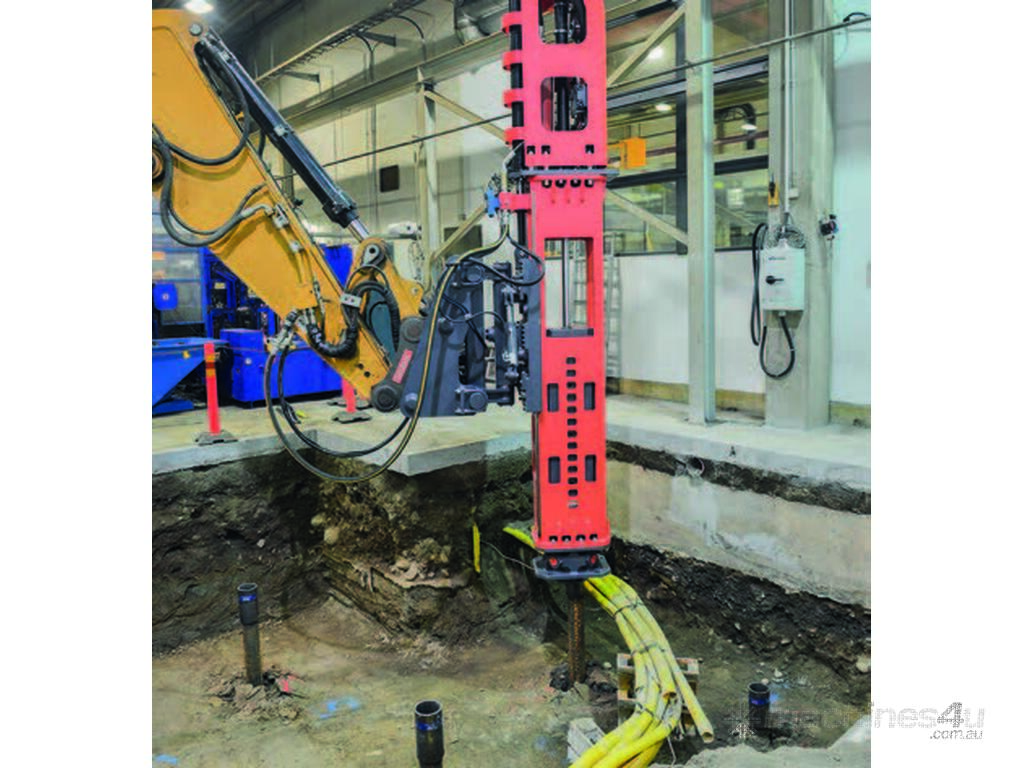 • The excavator mounting incorporates a 1.3 m leader. The piling hammer can also be mounted on an excavator-mounted leader mast.