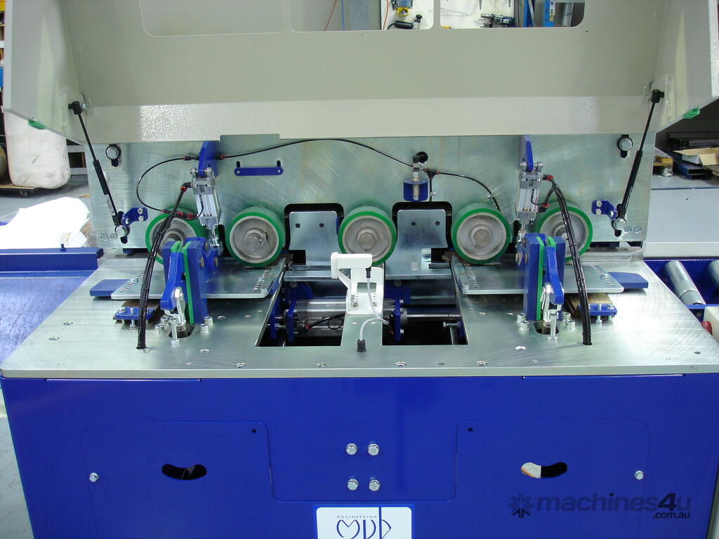 The boards are automatically fed into the machine via polyurethane top rollers and 'spring loaded' bed rollers.
