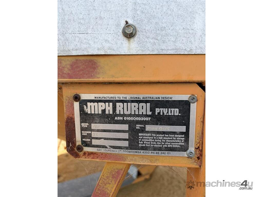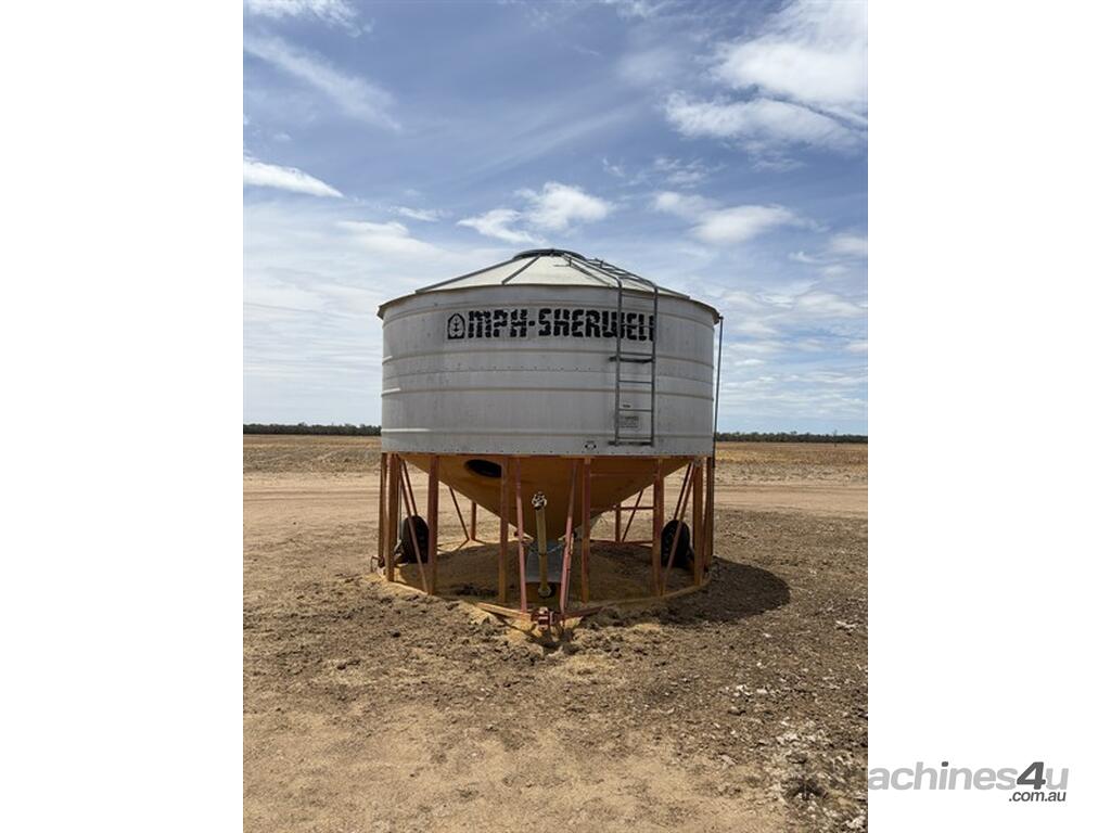 MPH SHERWELL 28T SAUCER BIN HAUL OUT/CHASER BIN - 28T, frame good, tyres ok, was used 2025 winter harvest. auger good, sinde good. Located Biniguy NSW. Contact Sandy Bailey for more information.