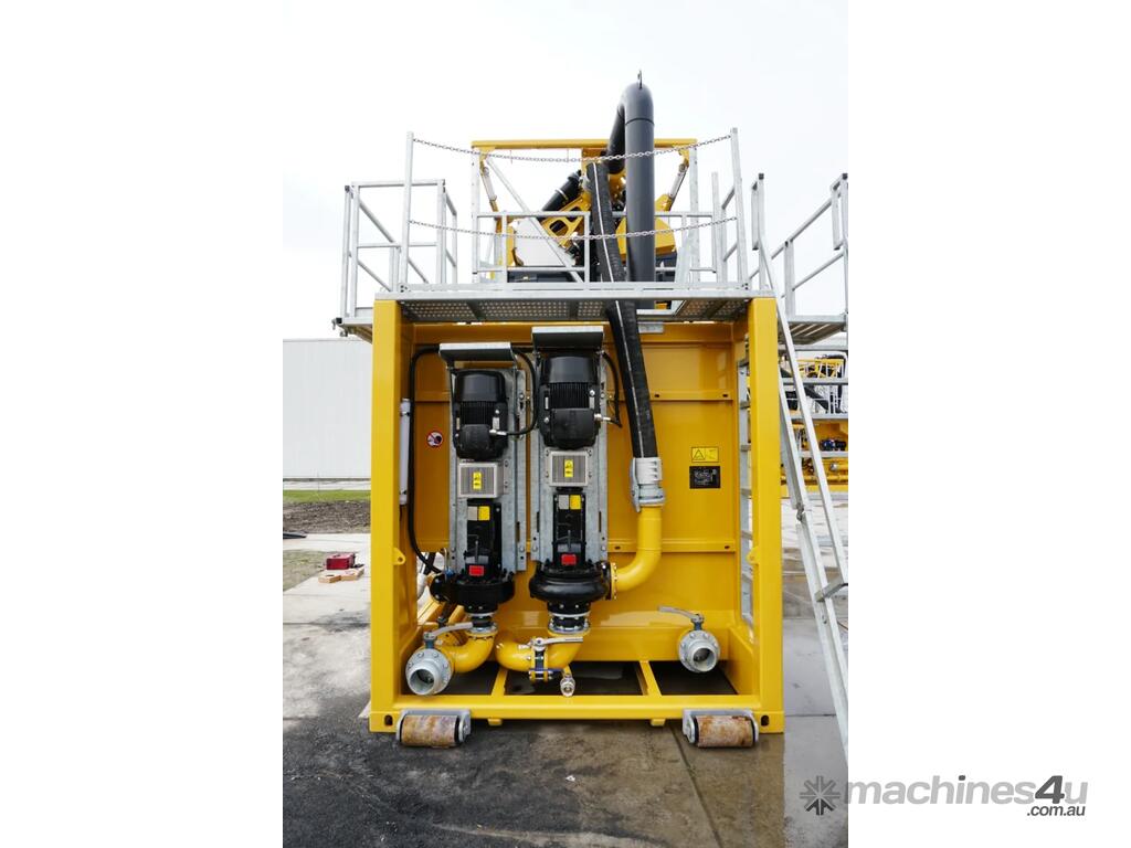 By using high end components such as the Mission Magnum Magnachrome circulation pump and the Krebs hydrocyclones the MR1000 mixer and reclaimer is designed for tough work. The compact size of 20ft ISO container dimensions enable efficient transport of the machine.
