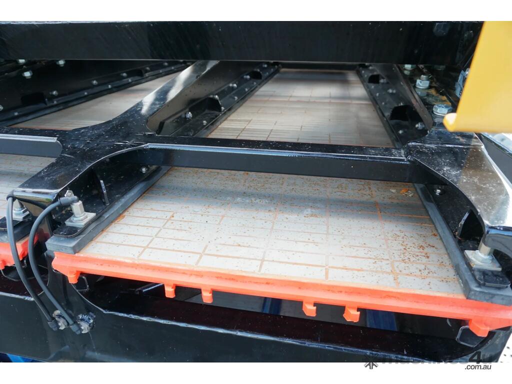 The primary screens are kept in place with an air clamping system, powered by an onboard air compressor.