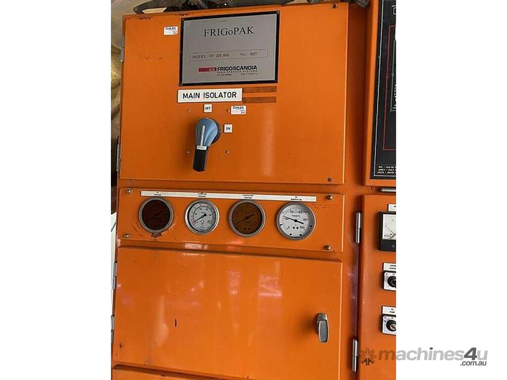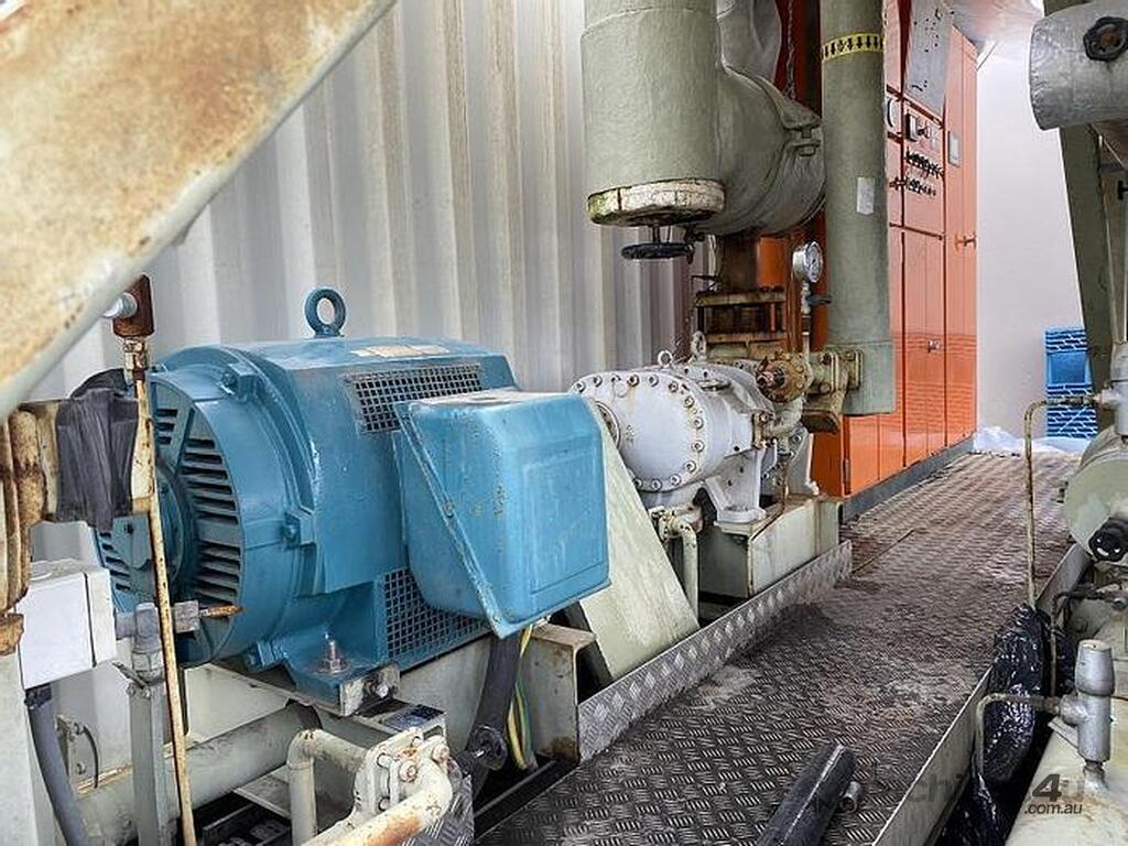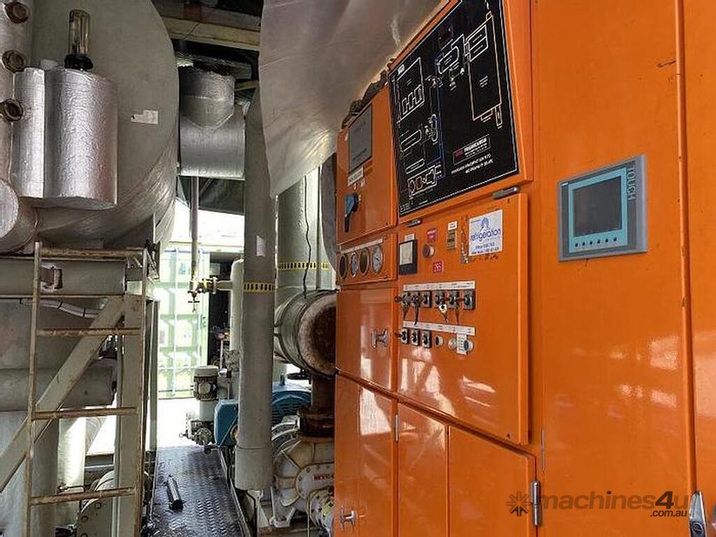 The MYCOM 200L Ammonia Refrigeration Pack is a reliable, pre-owned system designed for heavy-duty industrial use, including Frigoscandia Spiral Freezers. It features a MYCOM screw compressor, TECO motor, FRIGoPAK isolator, and Baltimore Air unit, all mounted on a compact skid. In good condition and offered at a competitive price, this system is a great opportunity for those in need of a cost-effective ammonia refrigeration solution. The owner is selling to free up space.