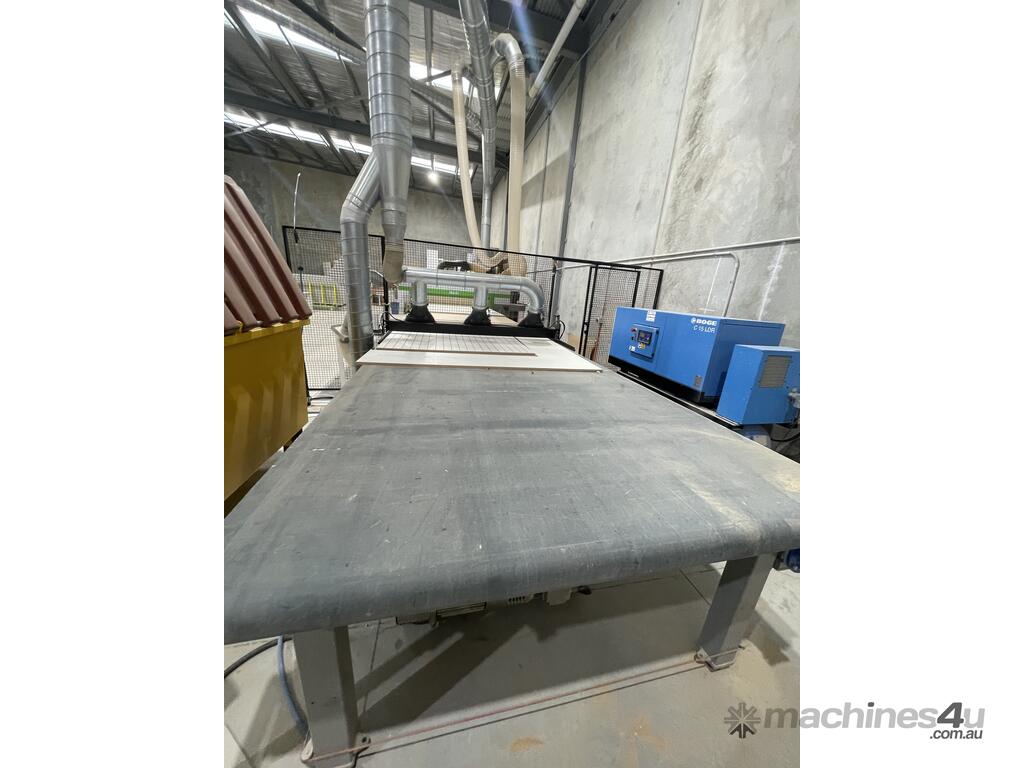 BIESSE 2016 FLAT BED NESTING MACHINE 3600 X 1800 WITH AUTO LABELLING. VERY GOOD CONDITION STILL IN OPERATION IN FACTORY EASTERN SUBURBS . INCLUDES AIRTIGHT T1000 DUST EXTRACTOR YEAR 2024 AND TOOLING INCLUDING SHAKER DOORS