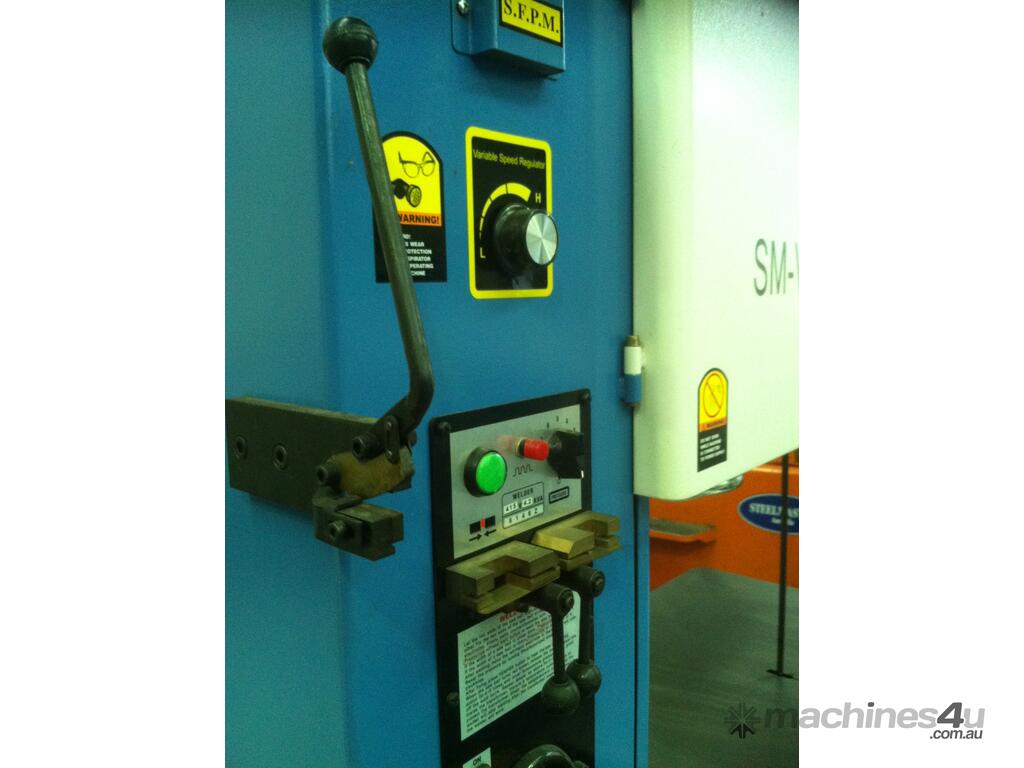 Steelmaster's line of Horizontal band saws includes saws that range from 180mm x 245mm maximum rectangle cutting capacity through to our heavy duty column range that will handle jobs up to 2000mm in diameter. We offer our range in manual, semi-automatic, and fully automatic operation. With over 20 models to choose from, finding the right Steelmaster horizontal bandsaw is easy. Looking to cut more intricate shapes and round radii? Try a vertical band saw range. Based on Capacity and throat depth Steelmaster Industrial's vertical bandsaws, are a must have in any metal fabrication shop.