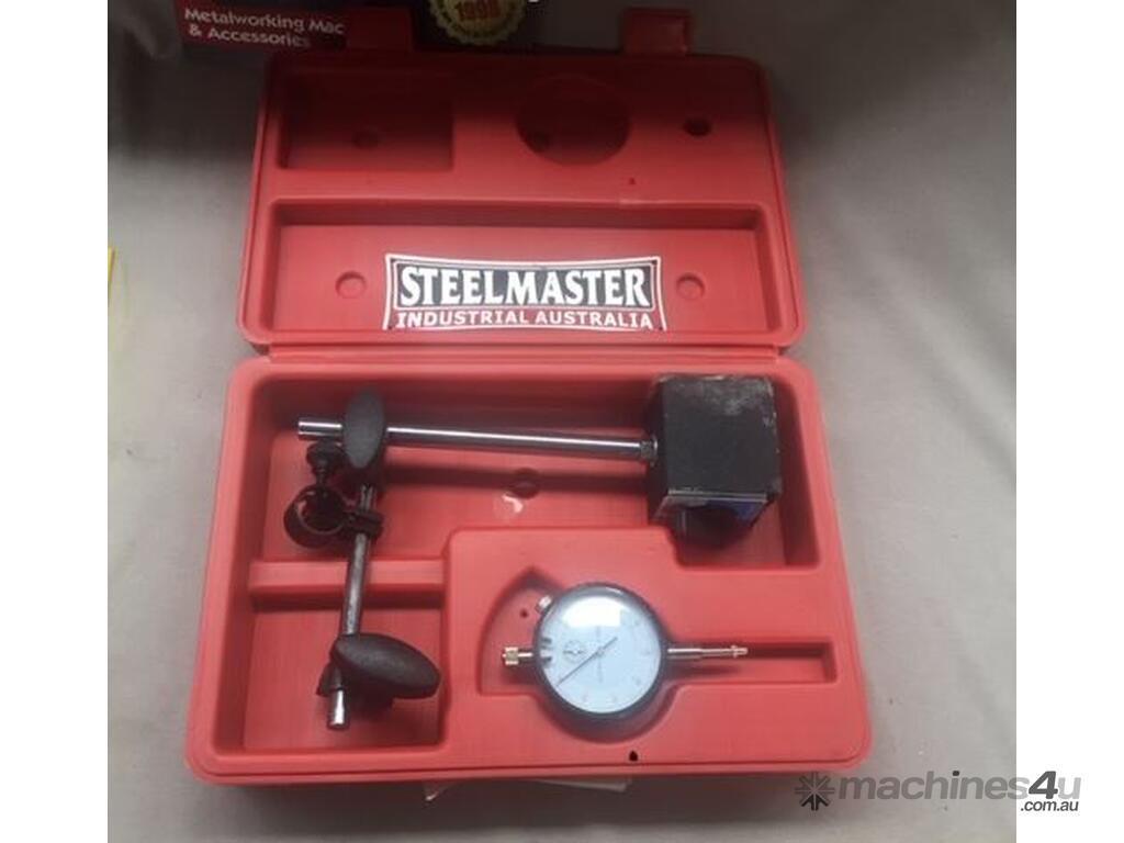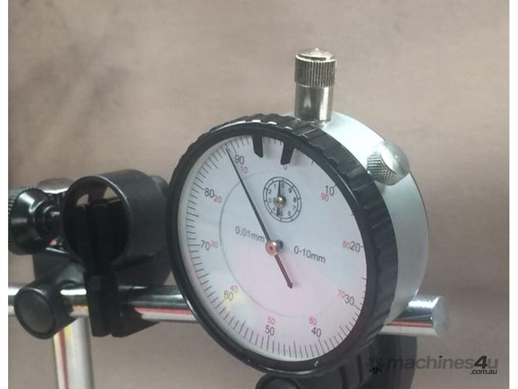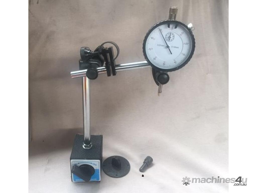 Precision measurements and set-ups have never been so easy. Magnetic base engages with just the turn of a switch and allows pinpoint adjustment. The dial indicator features 25mm travel and has a resolution of 0.01mm. This fine set includes a molded case for protection and convenience. The permanent magnet has an 80 kg holding force.The magnetic base indicator holder has a fine adjustment feature. The on/off switch makes it easy to position. The v-groove base allows you to mount it on cylindrical surfaces.