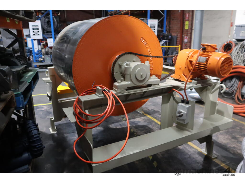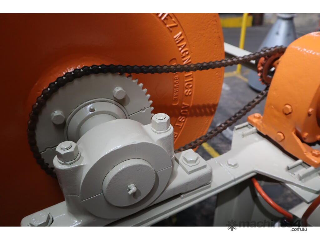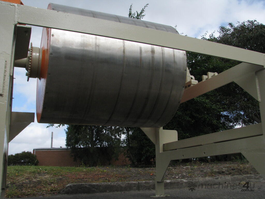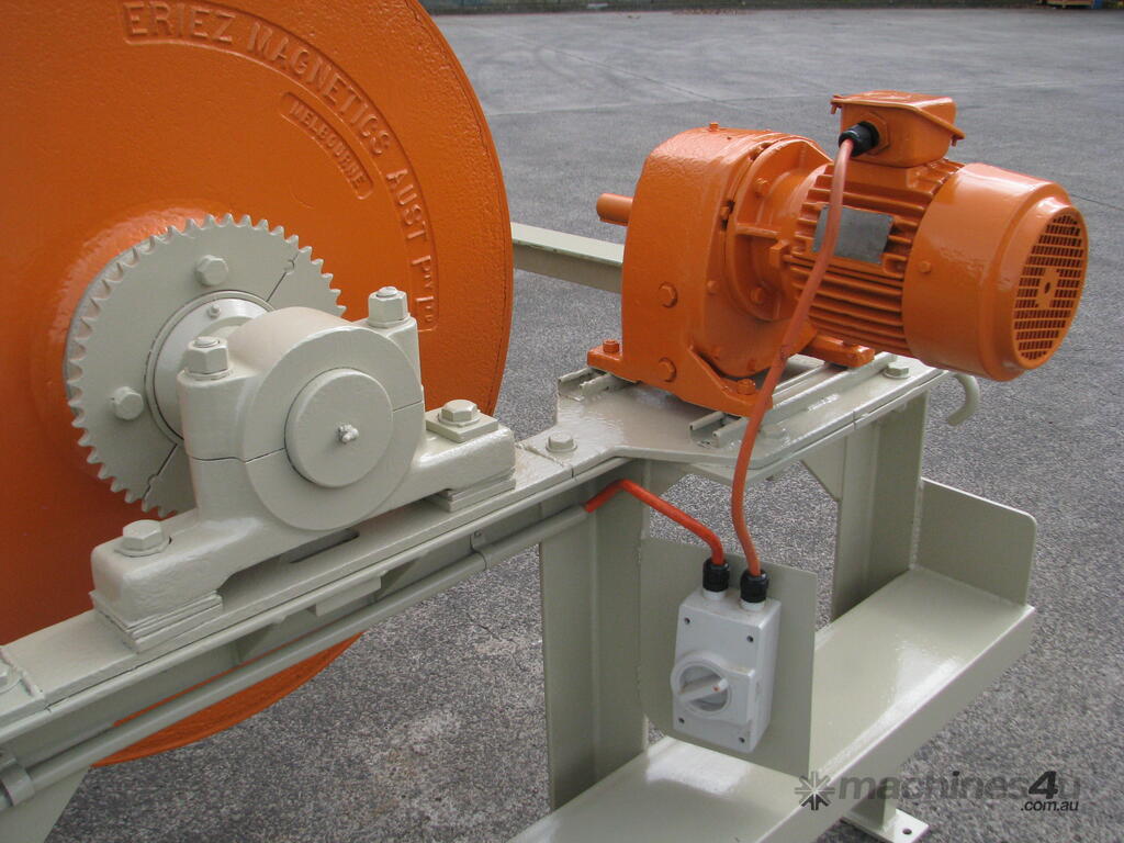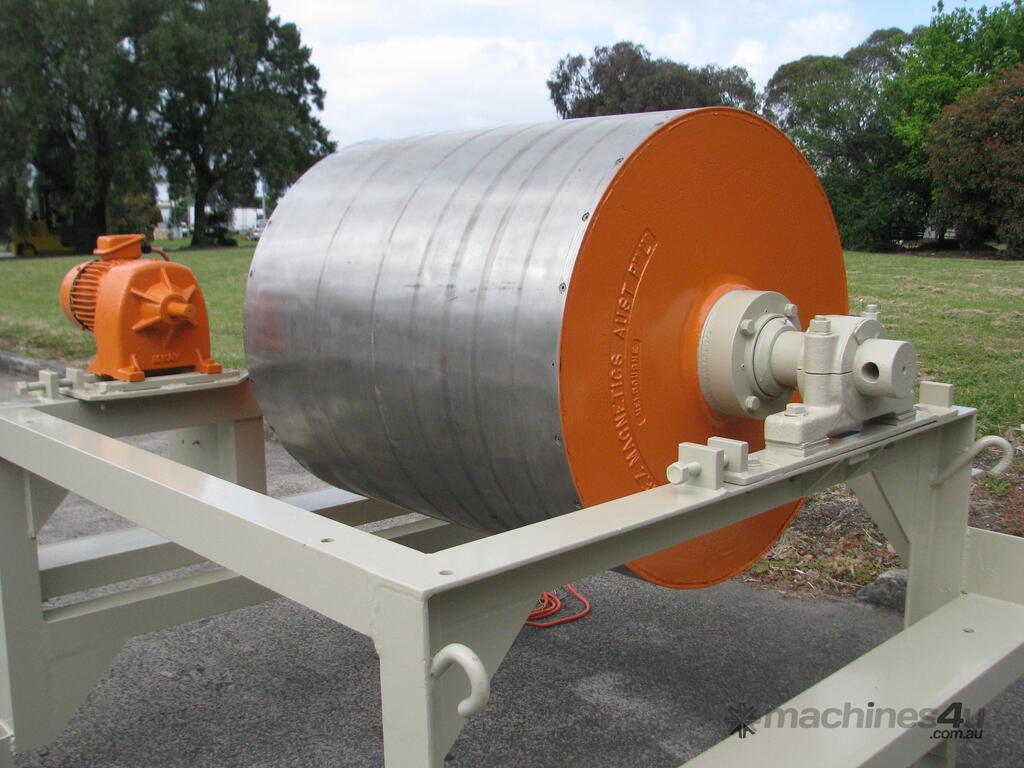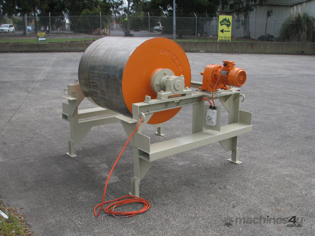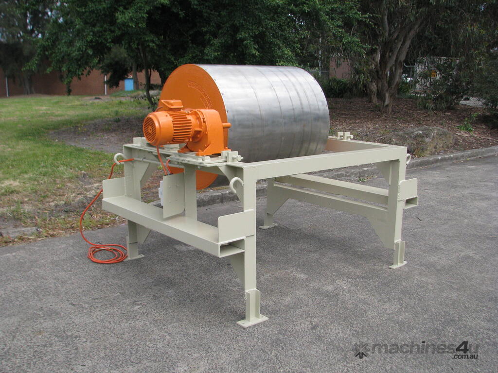 It has a magnetic drum inside that collects and separate metals from product that is tipped through the opening.