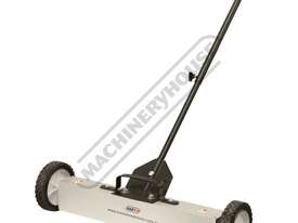 Featuring an light weight aluminium head wit 2 x rubber tyre wheels for manoeuvring to where you need it the most and also an adjustable handle height from 630mm to 1020mm makes this the ultimate floor sweeper solution for metal pick up