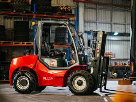 • Cab: The configuration for forklifts with Stage V engine includes a cab with front and rear windscreens and glazed roof. The FL “A” version, with Stage IIIA engine, will be fitted as standard with open cab, without front and rear windscreens, both available as optional accessories. The enclosed cab, equipped with side doors useful when working in weather conditions requiring air-conditioning or heating, will be available as optional feature for both versions.