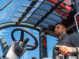The RTH 5.21 is a simple yet high-performance rotating telescopic handler. It can lift loads up to a height of 21 m and is equipped with pivoting stabilizers to guarantee stability and safety during all operational manoeuvres. It is also equipped with a safe load indicator to inform the driver of the risk of overloading the machine during use and features three steering modes. It is compatible with a wide range of accessories thanks to its RFID system which allows automatic recognition of attachments and creation of the corresponding load charts. This telescopic handler is the ideal solution to a long list of requirements in the construction and production sectors.