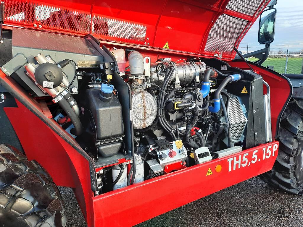 The TH 5.5.15 P is a fixed telescopic handler especially suitable for demanding light industrial sites. Powered by a Deutz 75 kW engine, it can safely reach a height of 14.80 m on rough terrain thanks to its 4-wheel drive and the automatic levelling system, which acts on both the wheels and stabilisers. The hydrostatic transmission offers precision and manoeuvrability. This machine is compatible with a wide range of attachments. It is equipped with the R.F.ID system which allows for automatic recognition of attachments and the creation of the relative load charts. This model is equipped with the levelling system on tyres allowing the operator to adjust the inclination of the machine. Thus, the entire load diagram is available for any type of operation, even when under normal conditions the slope of the terrain could affect lifting performance.