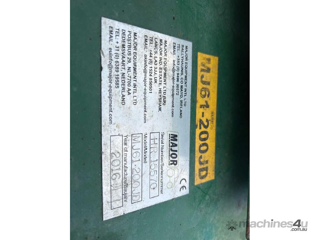 Major Equipment - MJ161-200JD Mower Deck,Out Front Deck Attachment, Ser # HR15570, YOM: 2016, Working Width: 1.88m, 3x Rotors, Cutting Height: 0-118mm, Weight: 290kg,Serial No: HR15570