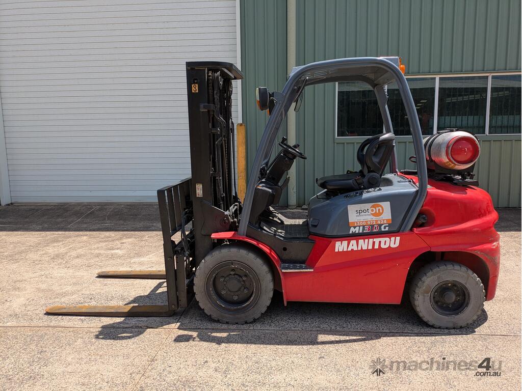 Reliable 3.0 tonne LPG forklift suited to industrial, warehouse, and yard applications where durability and flexibility are required. This Manitou MI30G is well equipped and designed for daily commercial use.