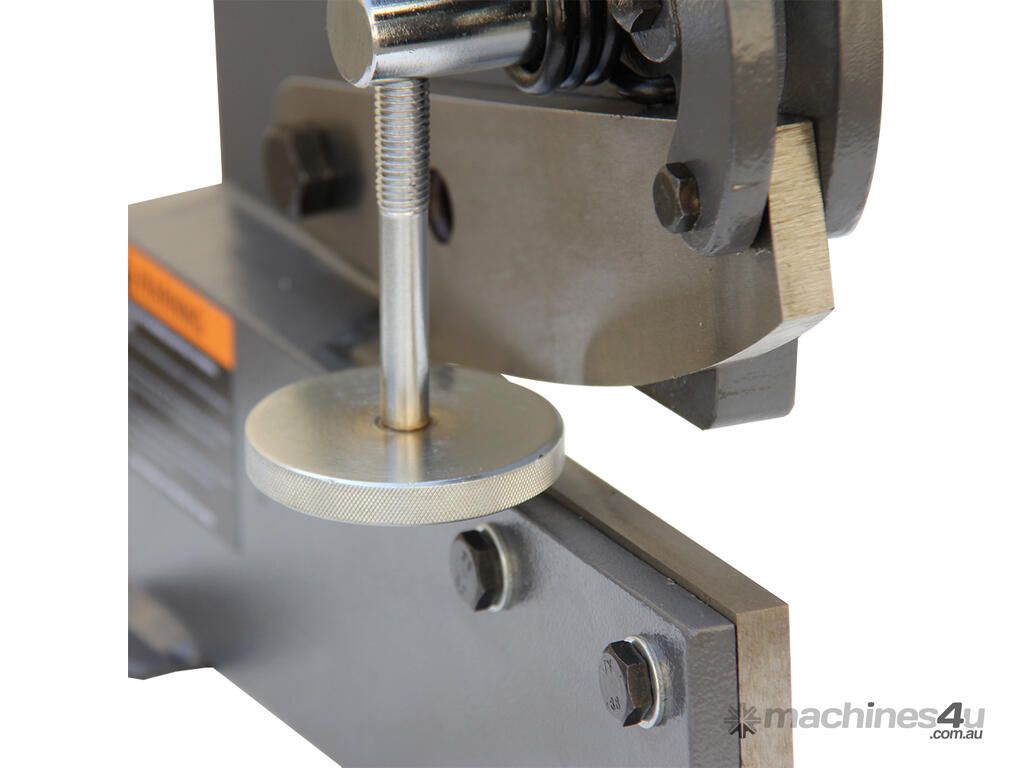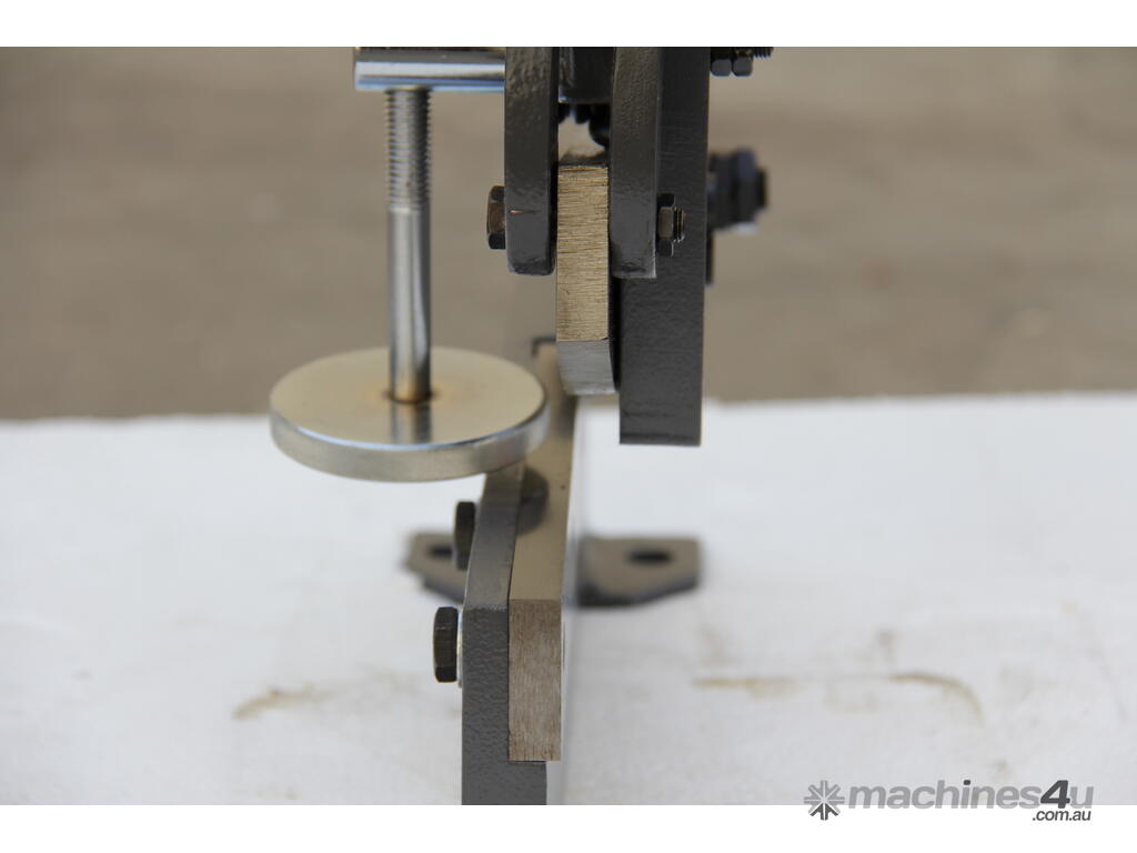 Benchtop Mounting Plate Shear. Securely bolts to any workbench or table top for safe, vibration-free operation; compact footprint saves valuable workshop space.
