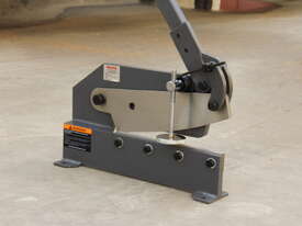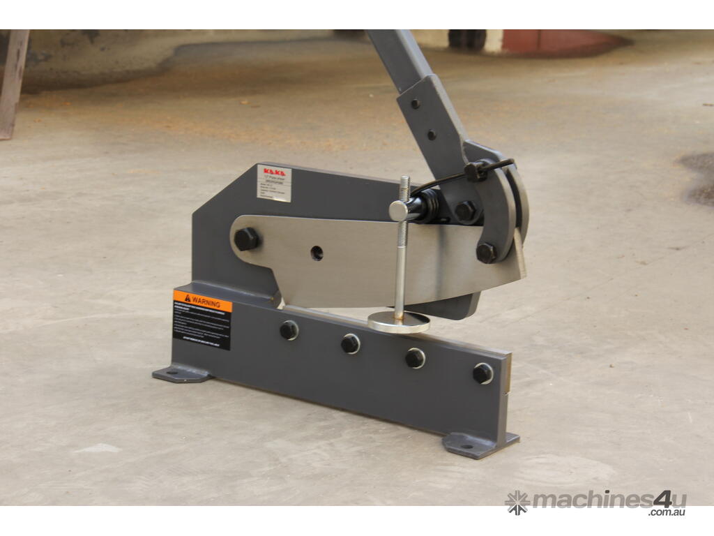 The KANG HS-10 is a heavy-duty manual hand plate shear designed for workshops, fabrication shops, metal fabricators, welders, farmers, and tradies. With a generous 254 mm throat depth and hardened HSS blades, this robust tool delivers clean, precise cuts through sheet metal, flat bar, round rod, and rebar with minimal effort. Featuring a strong steel fabricated frame, extended lever handle for excellent mechanical leverage, and replaceable ground & hardened knives, it cuts up to 6mm thick mild steel plate, 70mm x 6mm flat bar, and 13mm round rod.