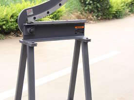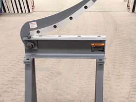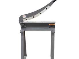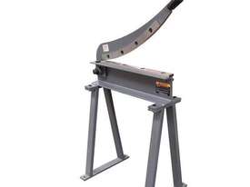 The Manual Shear on Stand HS-20 with Blade 500 mm is a versatile and robust tool designed for precise cutting of thin metal sheets and various other materials. Ideal for workshops, DIY enthusiasts, and small-scale fabrication tasks, this universal shear features a 500 mm blade length capable of handling sheets up to 1.5 mm thick. It comes complete with a sturdy stand that can be securely fixed to the ground for enhanced stability and safety during operation. The blade is equipped with return springs for smooth and effortless cutting action, reducing user fatigue. The manual guillotine shear is built for durability and ease of setup. Recommended for cuts where the blade is at least 20% longer than the material width to ensure clean, accurate results every time. Perfect for users working on metalworking projects, automotive repairs, or crafting without the need for power tools