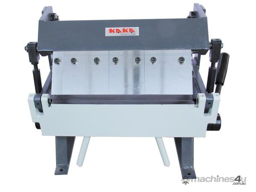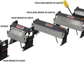 The 305 mm Manual Panbrake Folder W-1220A is a compact, versatile tool engineered for intricate sheet metal bending tasks. It excels in creating complex shapes, such as boxes, pans, and custom profiles, by utilizing removable sectional fingers. 305x1.0 mm mild steel plate capacity, max. bending angle up to 135 degrees.