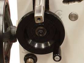 The SRG-50E sheet metal curving rolls are engineered for precision and ease of use. A single handwheel adjusts both sides of the rollers simultaneously through a wedge-type system, enabling effortless clamping for varying material thicknesses. Additionally, another handwheel controls the rear curving roll using a worm gear and lever cam mechanism, simplifying the process of curving sheet metal.