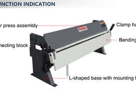 Heavy-Duty Construction Sheet Metal Folding Machine. Features a robust steel frame designed to minimize deflection under pressure, ensuring straight and accurate bends across the full 915mm length.