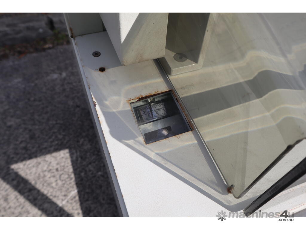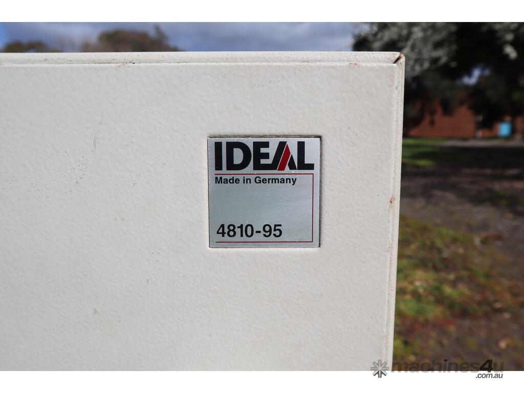 This IDEAL 4810-95 is a professional power guillotine designed for accuracy, durability, and operator safety. With a 475 mm cutting length, it handles large stacks of paper effortlessly. A manual spindle clamping system with large handwheel ensures firm, even pressure, while the spindle-guided back gauge with hand crank and analogue readout provide precise positioning in millimetres or inches.
