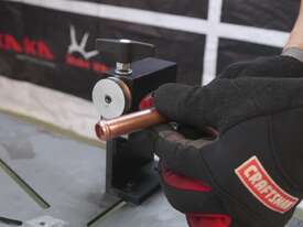 The bead former is engineered for 9.5mm OD tubing with a maximum wall thickness of 0.9mm, making it perfect for fuel lines, radiator hoses, intake piping, and copper tubing used in plumbing or refrigeration. It produces round bead profiles to secure hoses effectively.