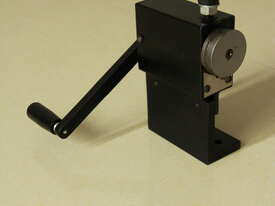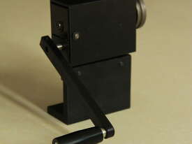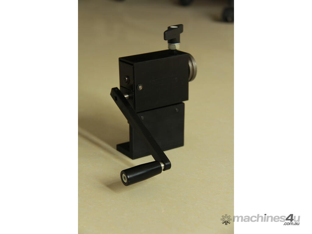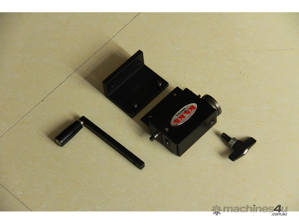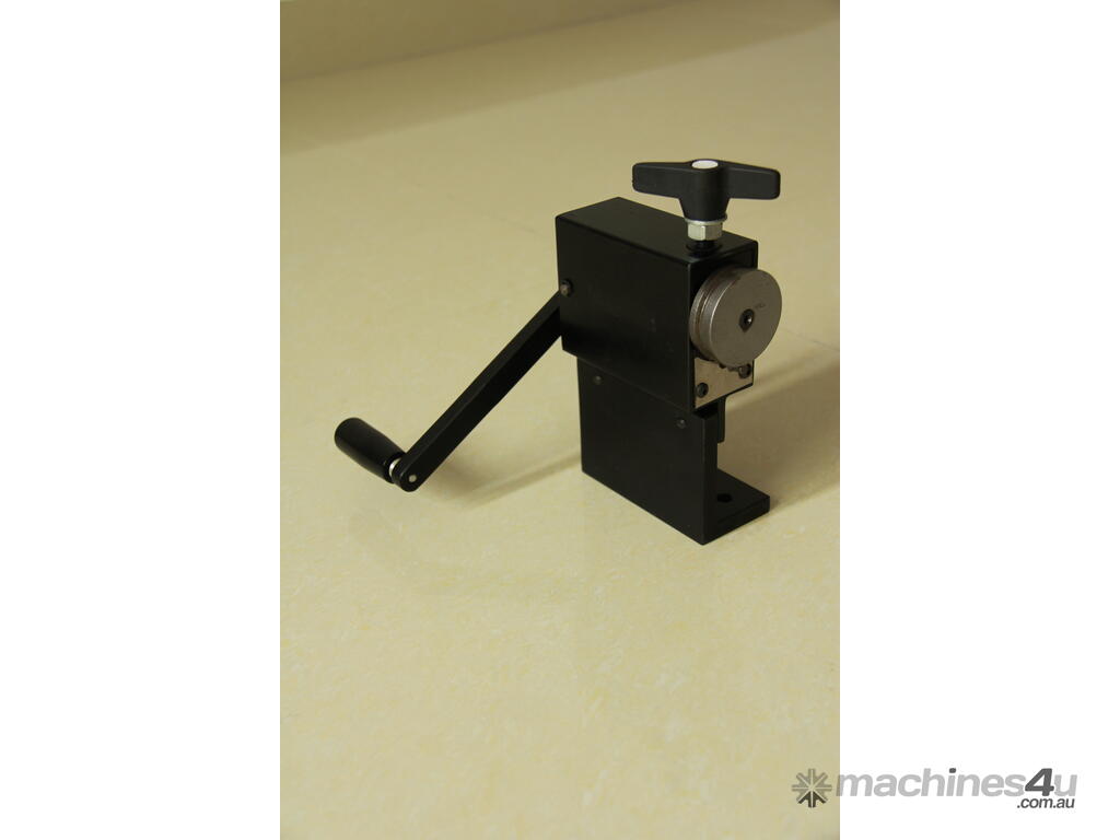 Constructed with a solid aluminium housing, it features hardened, precision-machined internal gears and replaceable bronze bushings for durability and long-term accuracy. The manual crank handle is removable, allowing adaptation to a 1/4" square socket for faster operation with a power tool. The unit can be bench-mounted or vice-mounted using included blocks, offering flexible setup options.