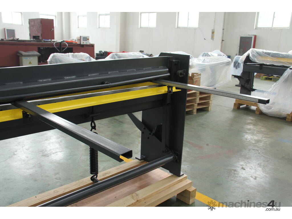 User-Friendly Guillotine Shear. Adjustable back gauge, front guides, and extension arms provide superior accuracy and support for large sheets, crucial for professional results in busy sheds or workshops.