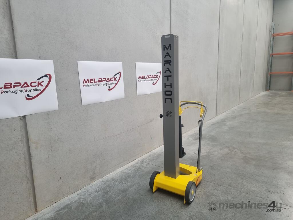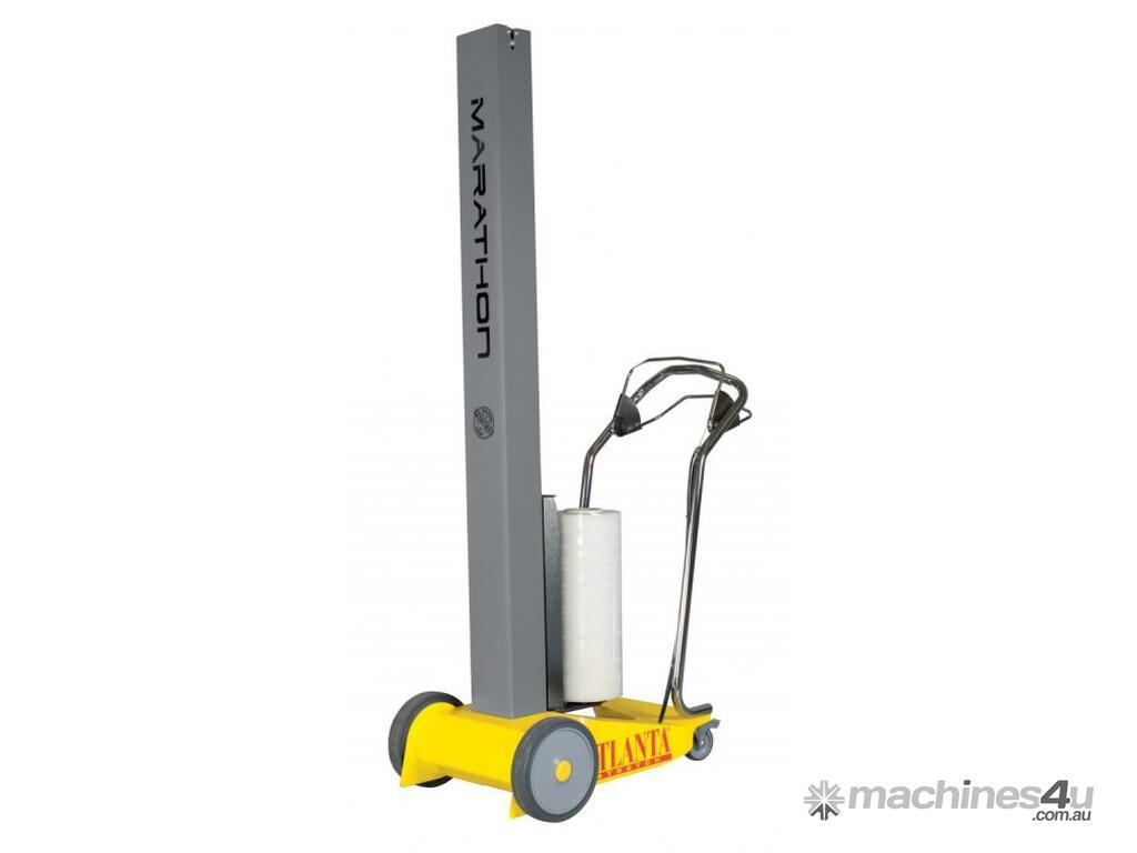 The marathon is a mobile pallet wrapper for those with limited space, lower volume or with oversized goods. the Marathon saves back injuries by allowing users to wrap pallets by hand without bending over.
