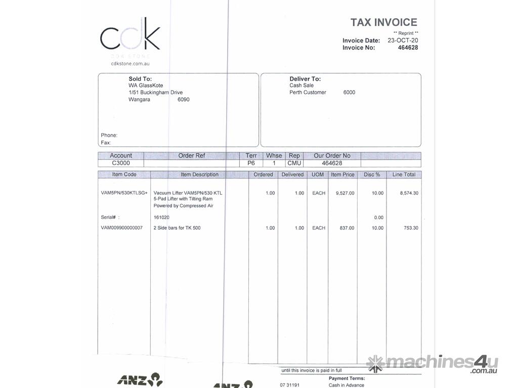 Manzelli Vacuum Lifter 500 kg :      $5,000 AUD($5,500 Inc. GST)